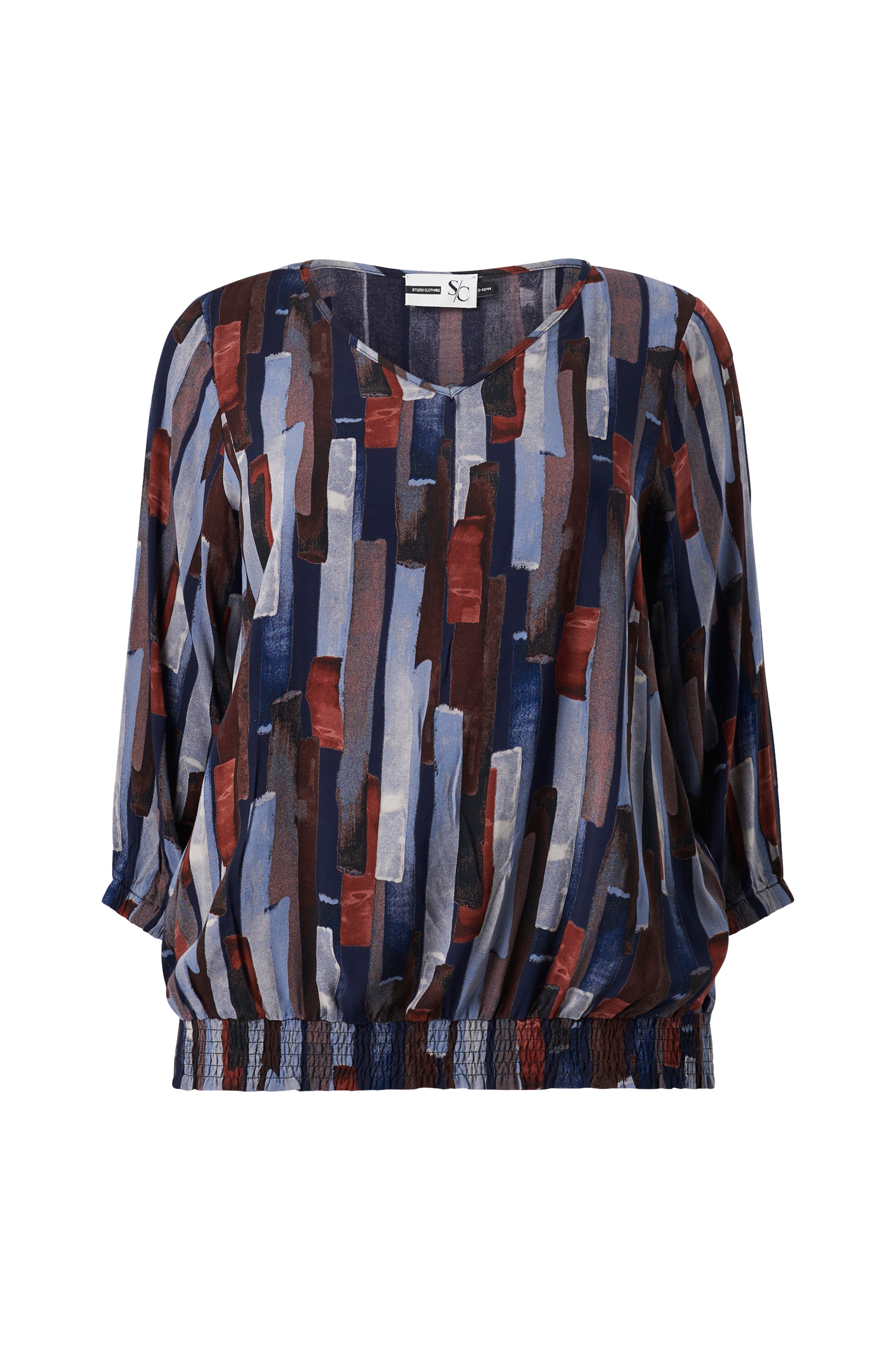 • V-udskæring• Smock ved nederste kant• Elastisk bånd ved manchetterne• Store størrelser
