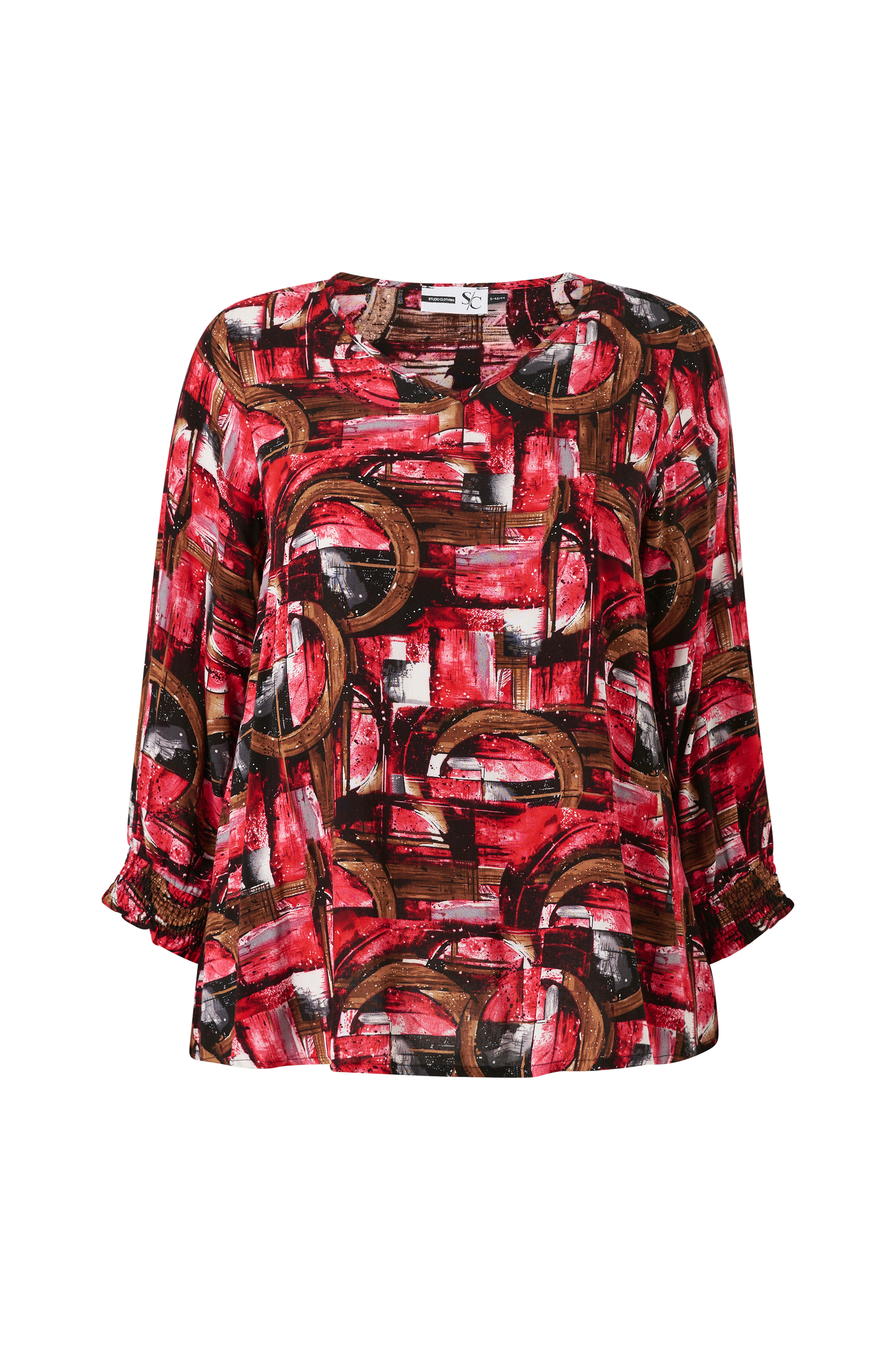 • Bluse i viskose med printet mønster• V-formet halsudskæring• Lange ærmer med smock ved manchetterne• Store størrelser