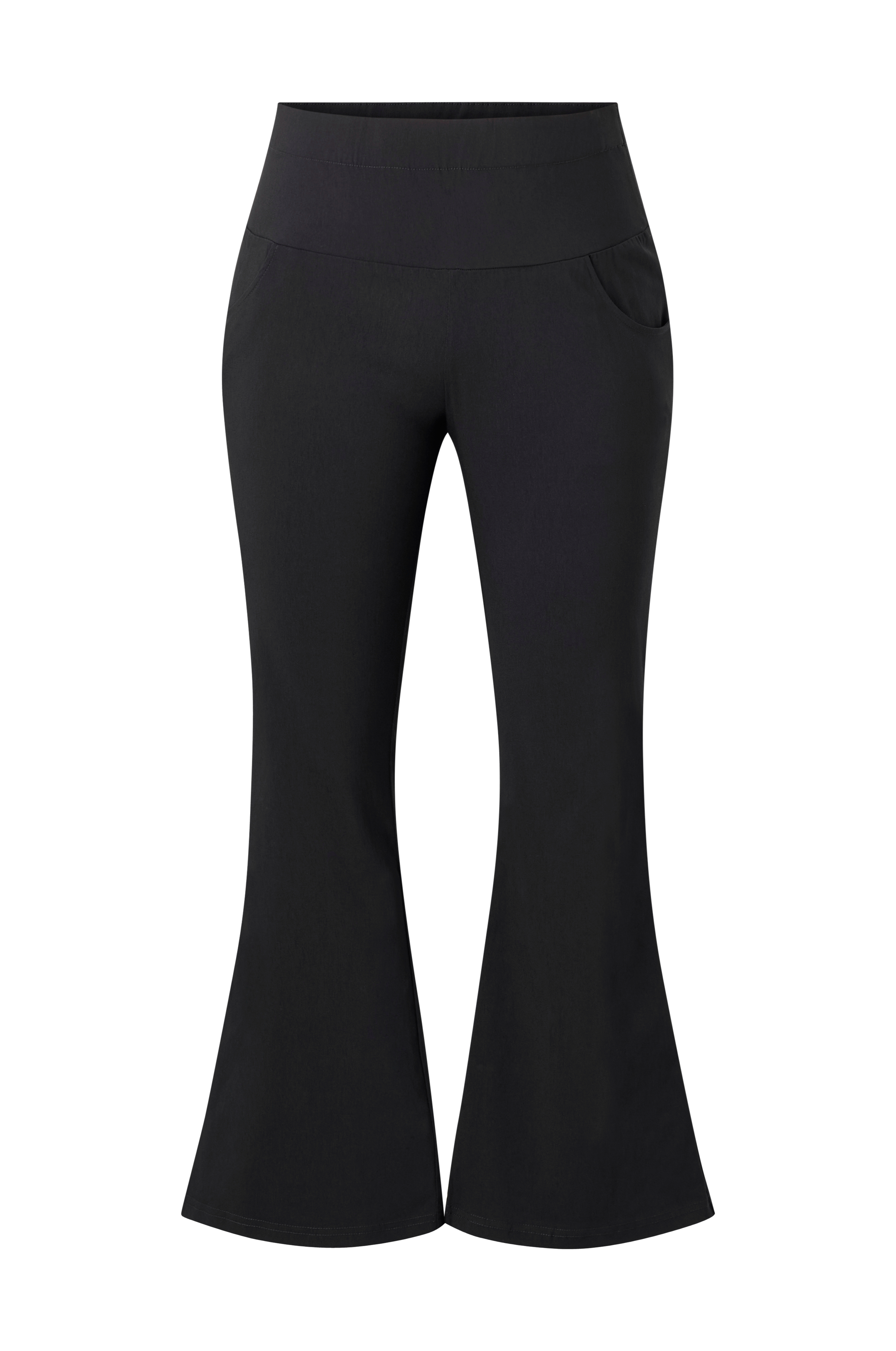 • Elastiske bukser med bootcut-model• Elastik ved taljen• Sidelommer• Plusstørrelser• Indre benlængde: 78 cm i størrelse S