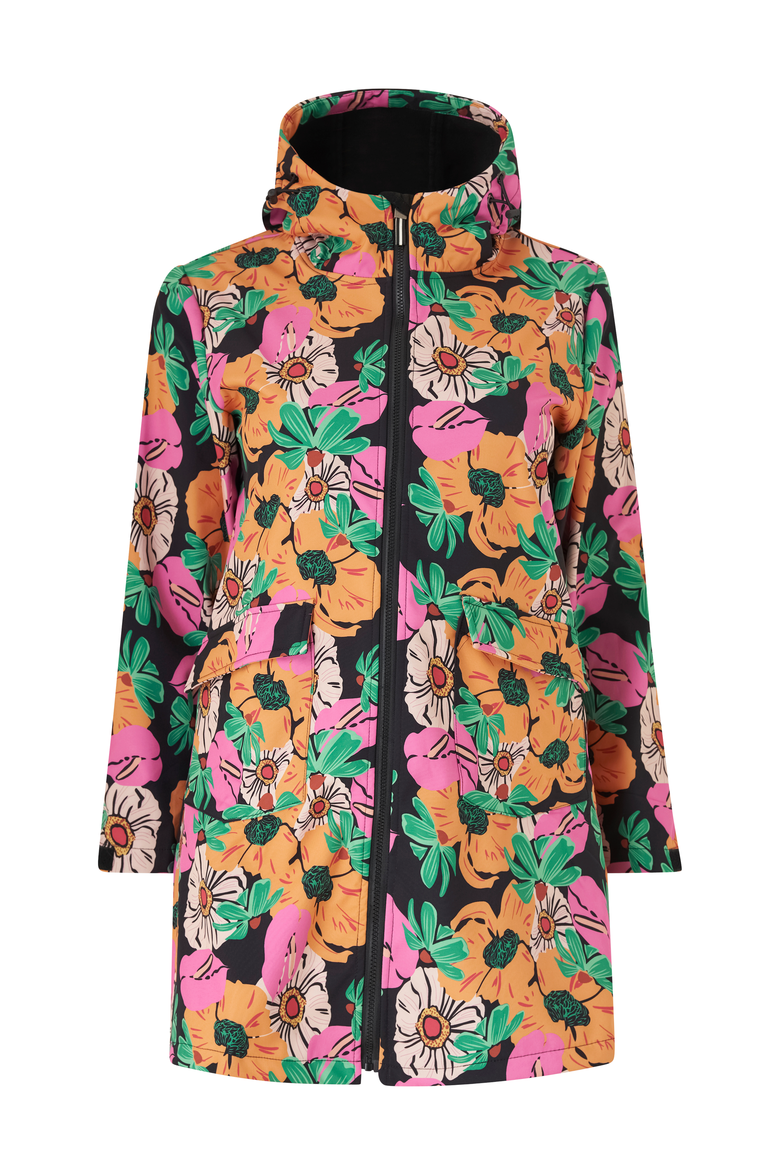 • Mønstret jakke i softshell• Inderside i fleece• Fast hætte med træksnørre• Lynlås• To lommer med lommelåg• Justérbare ærmeafslutninger• Store størrelser• Længde: 90 cm i størrelse S