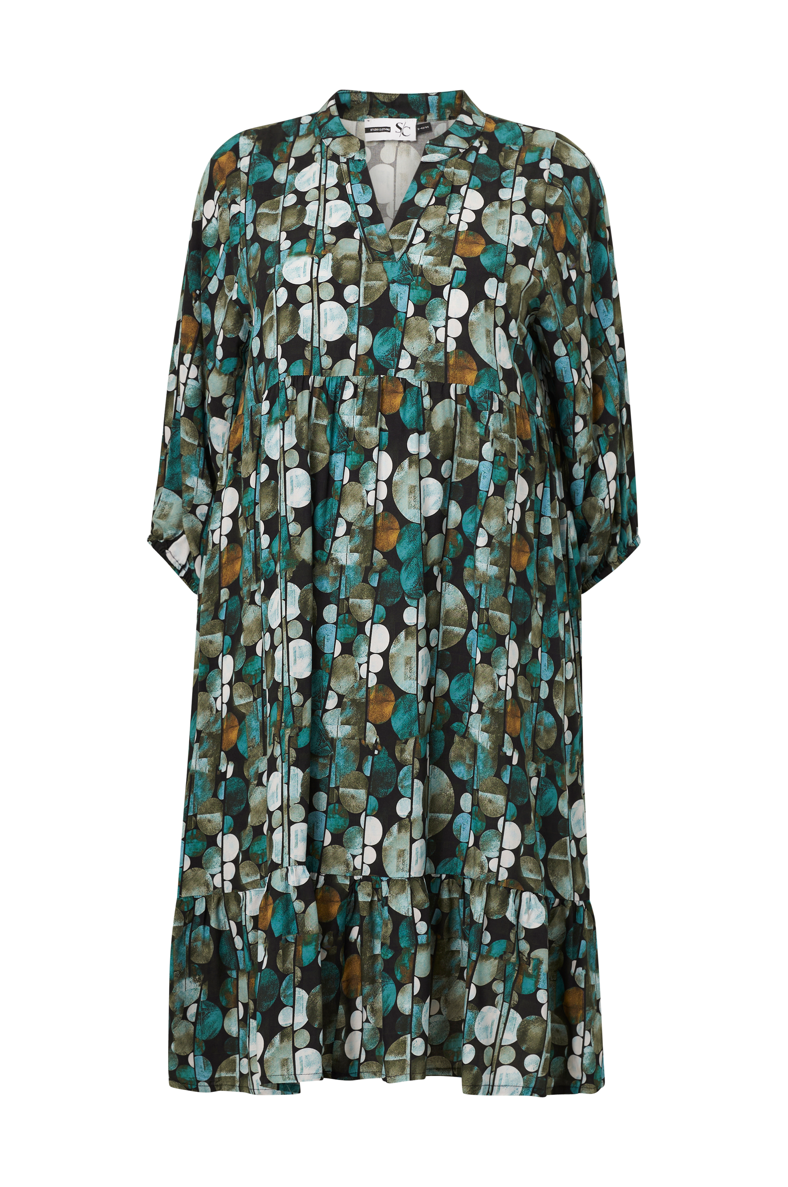 • Store størrelser• Model med svaj• Defineret, rynket talje• V-udskæring foran• Bredt, 3/4 langt ærme med elastisk bånd ved manchetterne• Indlagte sidelommer• Længde: 112 cm i størrelse S