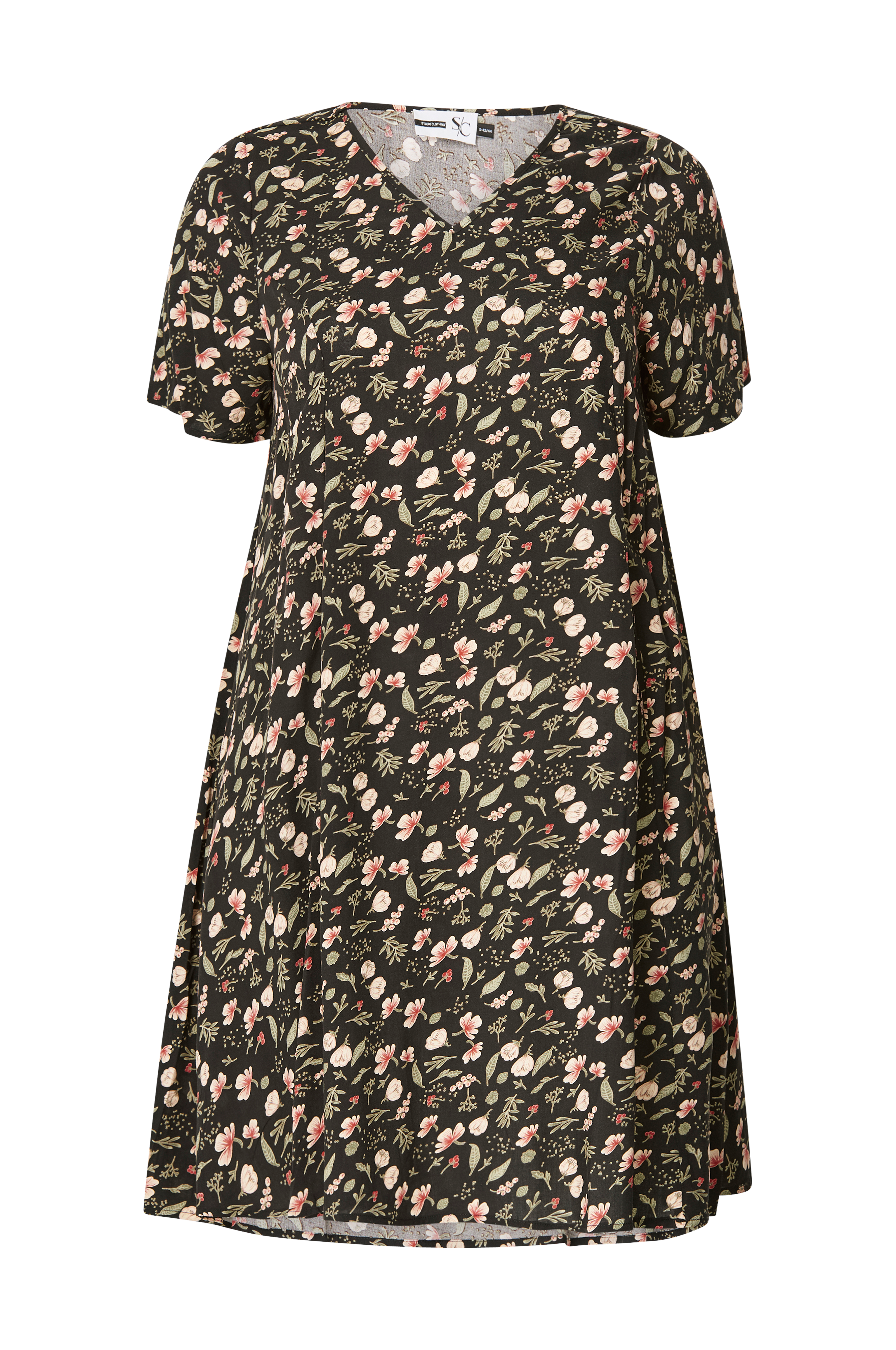 • Store størrelser• Bred model med svaj• V-formet halsudskæring• Kort ærme• Længde: 101 cm i størrelse S