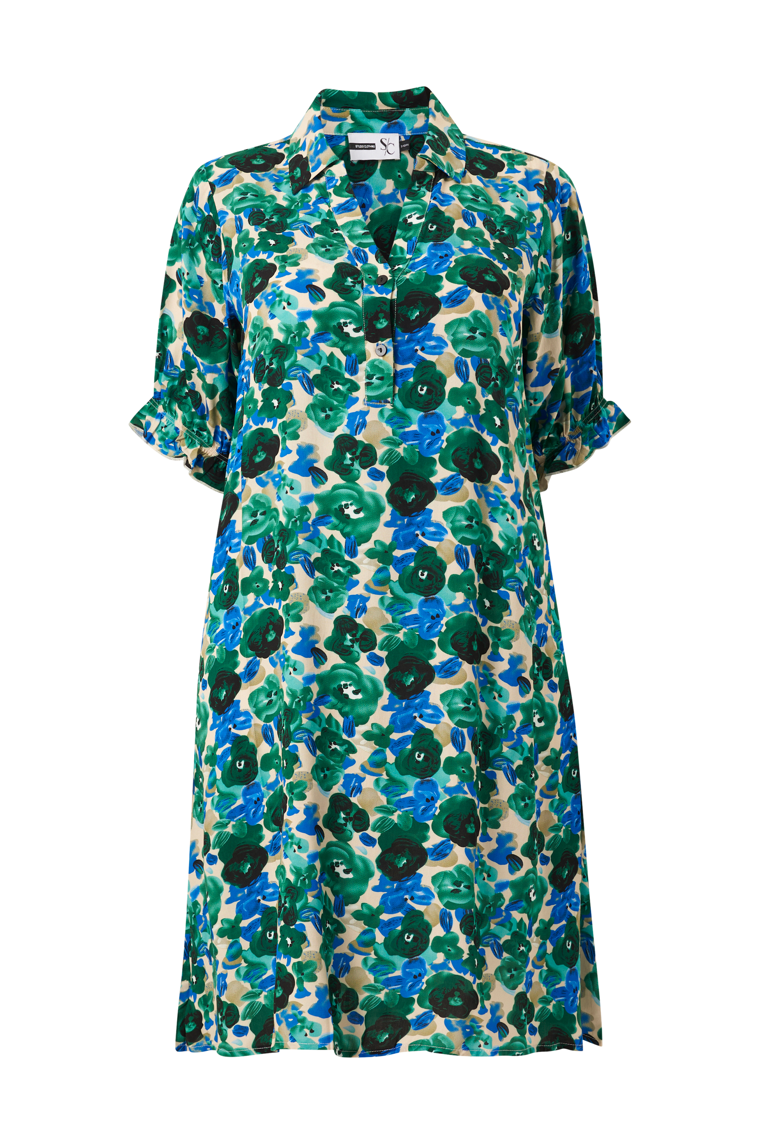 • Mønstret kjole i viskose• V-udskæring med krave• Korte, brede ærmer med volant ved manchetterne• Store størrelser• Længde: 106 cm i størrelse S