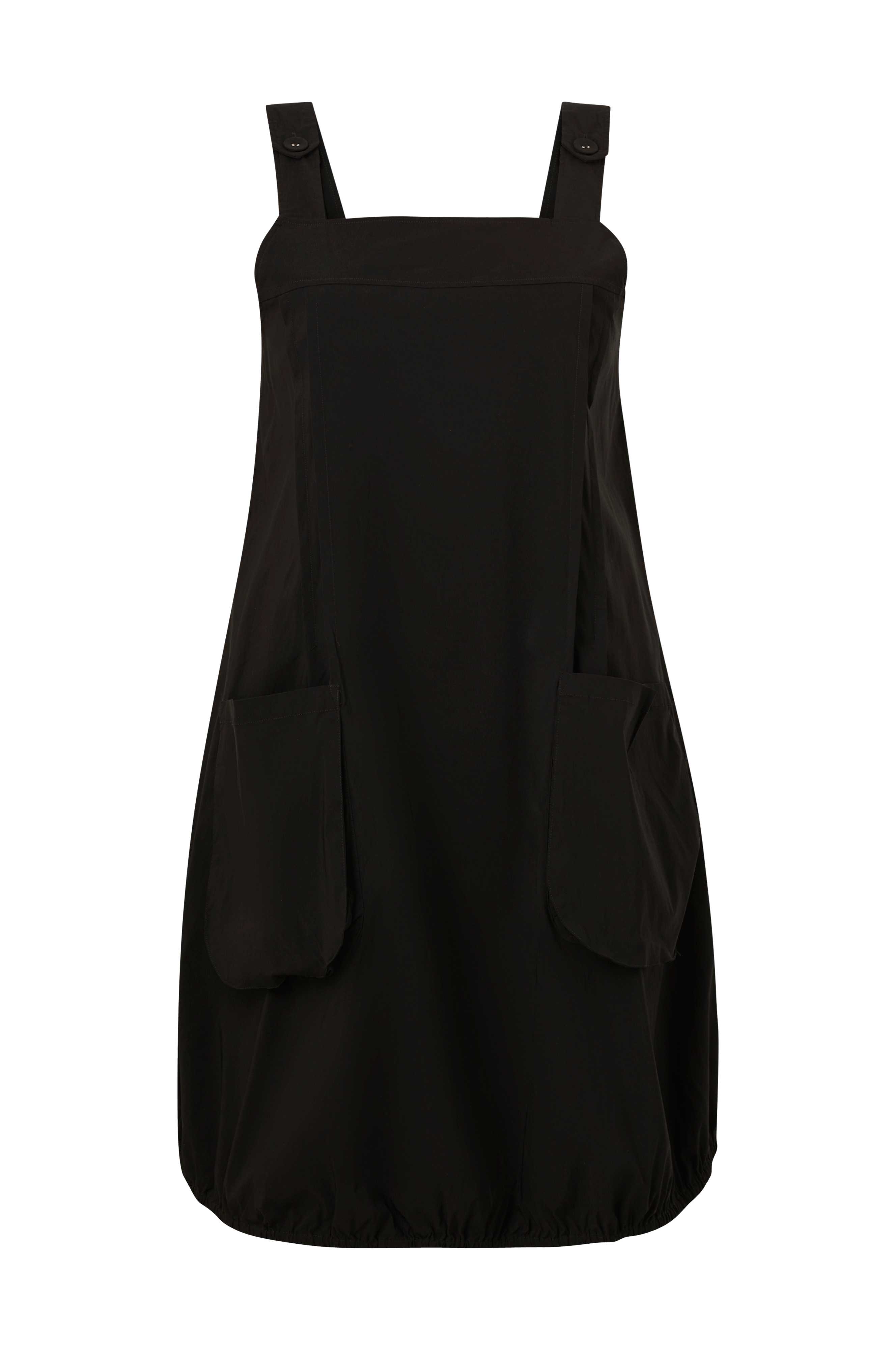 • Store størrelser• Bred, ærmeløs model i stretchkvalitet• Skulderstrop med beklædte knapper• Syede bokslæg foran• Store bælglommer• Indlagt elastisk bånd ved nederste kant• Længde: 106 cm i størrelse S