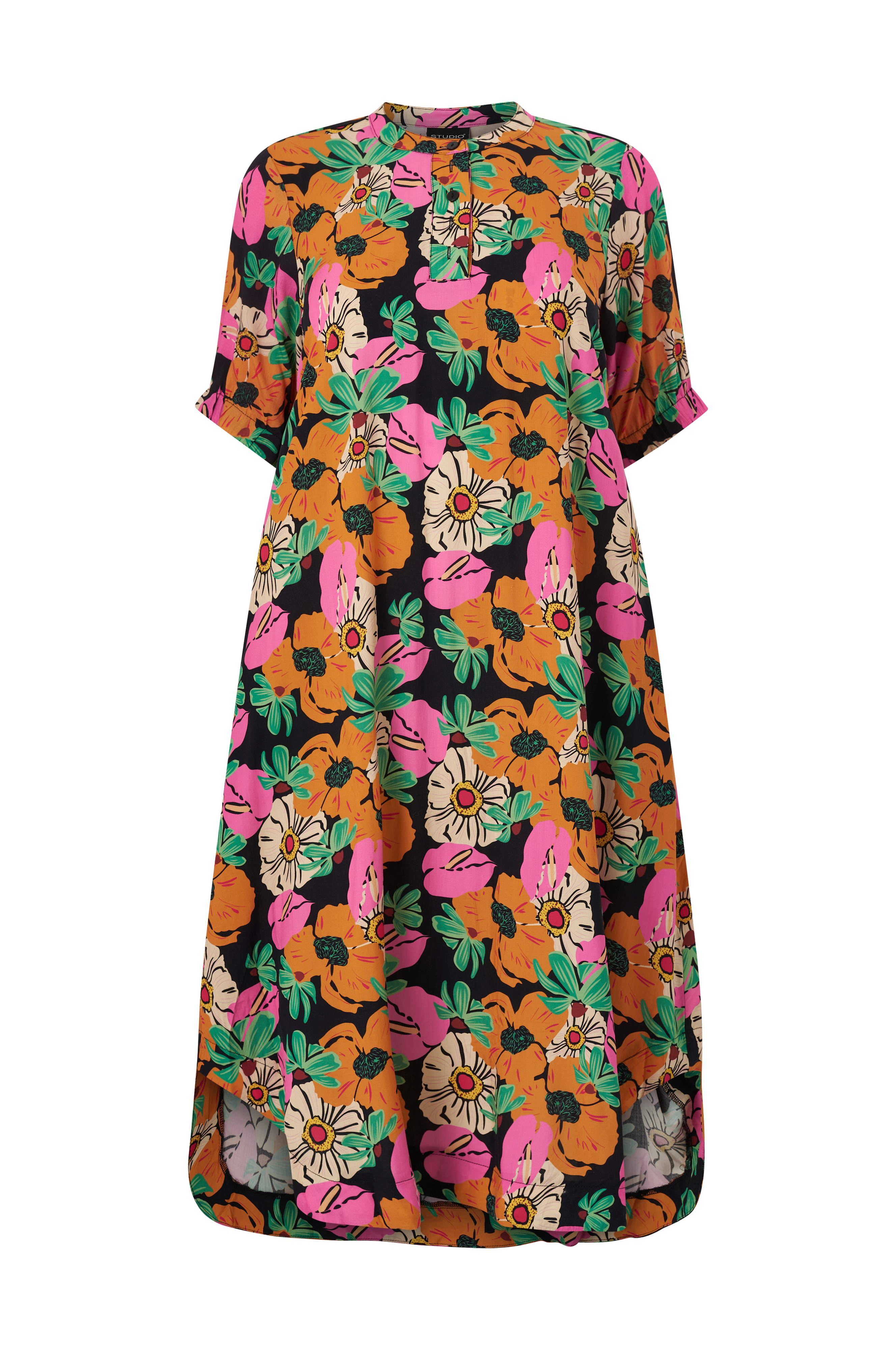 • Store størrelser• Lang model med svaj i blød viskose• Rund hals med kort knaplukning foran• Kort ærme med bred, indlagt elastik ved manchetterne• Sidelommer• Afrundet søm• Længde: 123 cm i størrelse S