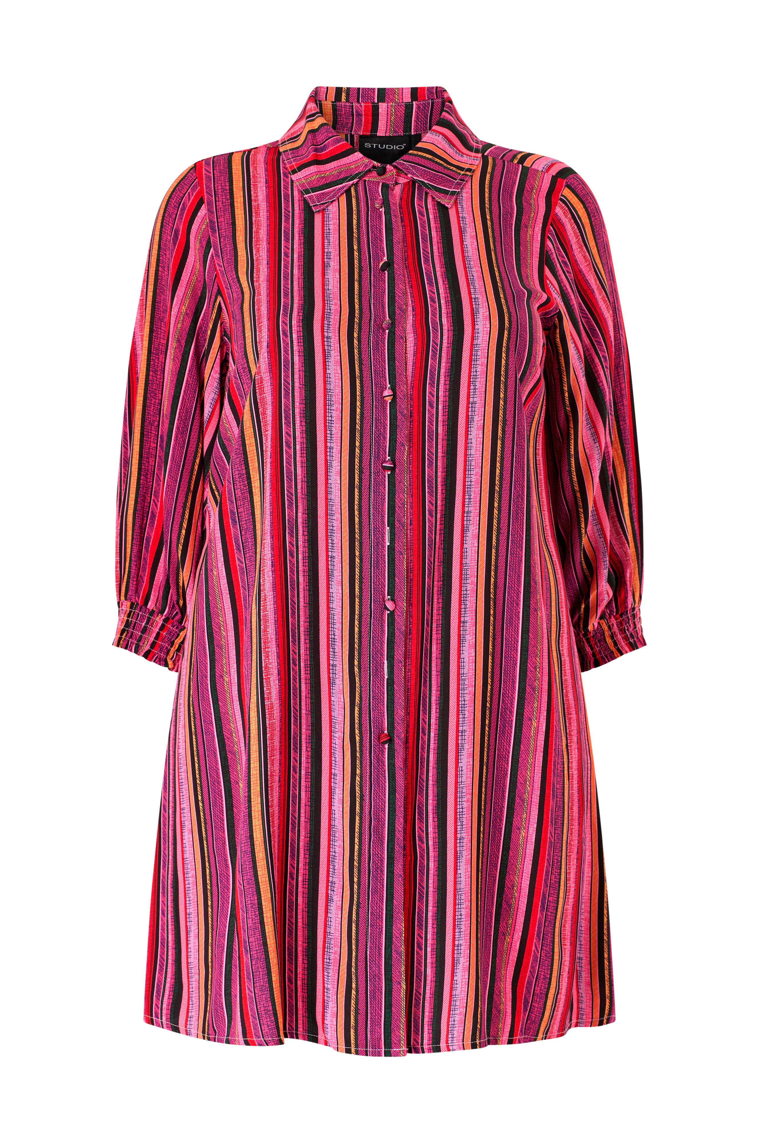 • Blød, tynd kjole i viskose• Skjortekrave• Beklædte knapper• Lange ærmer med smock ved manchetterne• Slidser nede i siderne• Plusstørrelser• Længde: 100 cm i størrelse S
