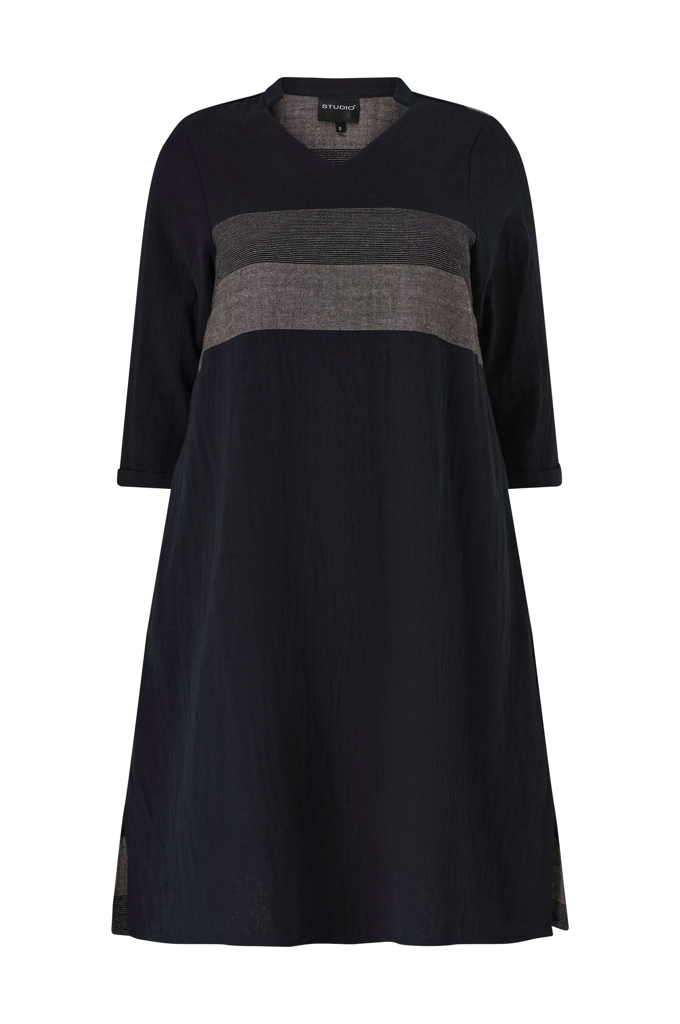 • Store størrelser• Lang model med svaj• V-formet halsudskæring• Lige, 3/4 langt ærme med fæstet oprullet• Sidelommer• Korte slidser nede i siderne• Længde: 112 cm i størrelse S
