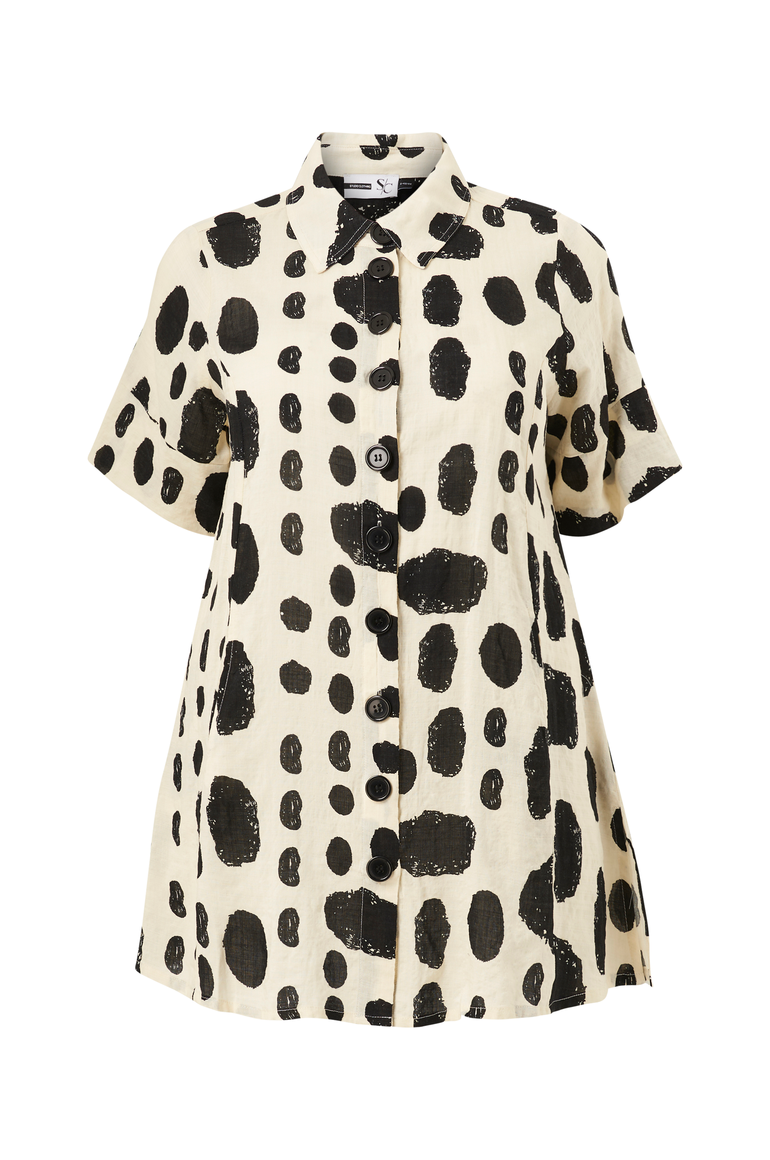 • Printet mønster• Kort ærme• Sidelommer• Slidser nede i siderne