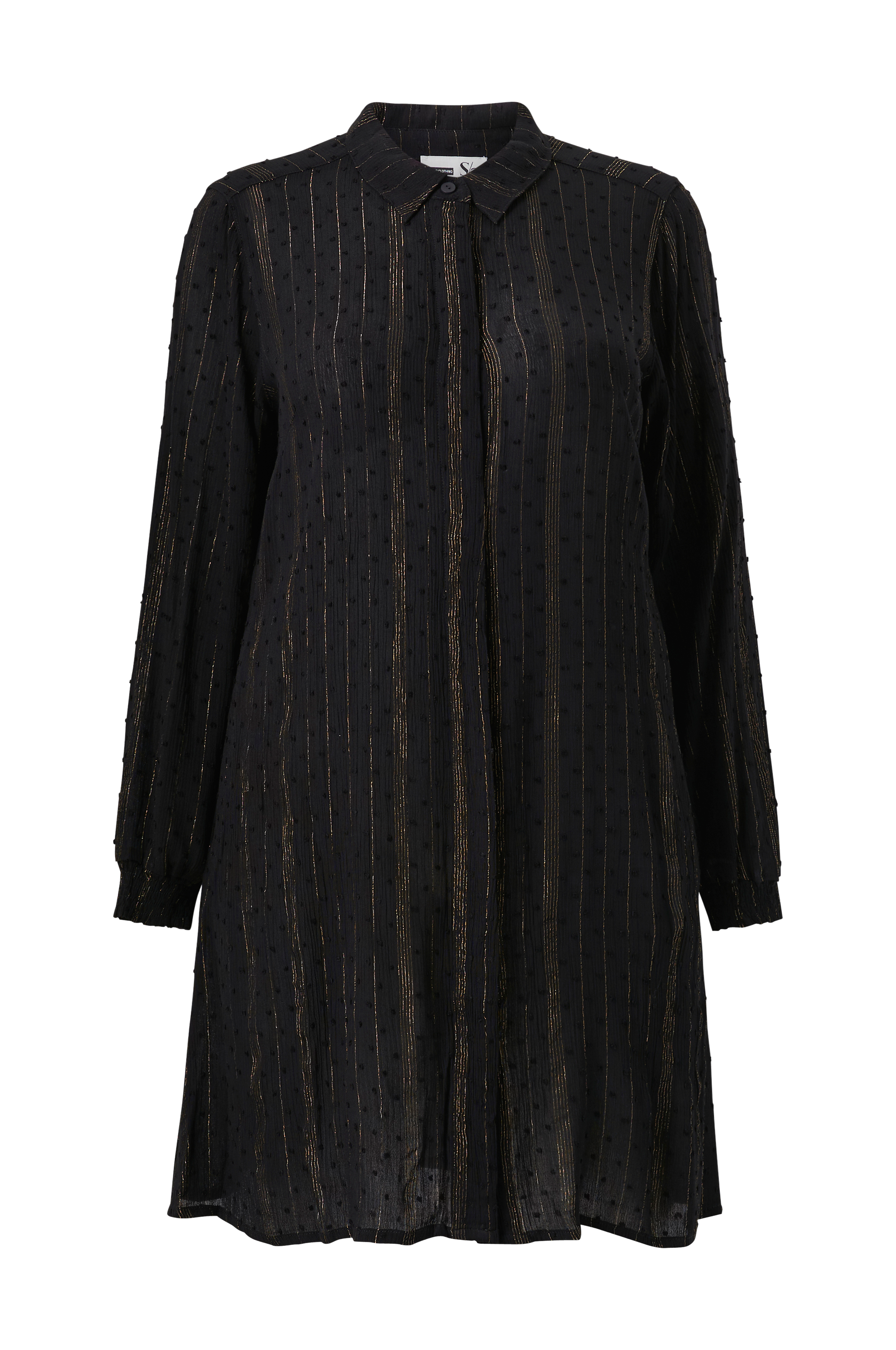 • Skjorte i viskose med tynde, glitrende striber• Skjulte knapper• Lange ærmer med smock ved manchetterne• Store størrelser• Længde: 98 cm i størrelse S