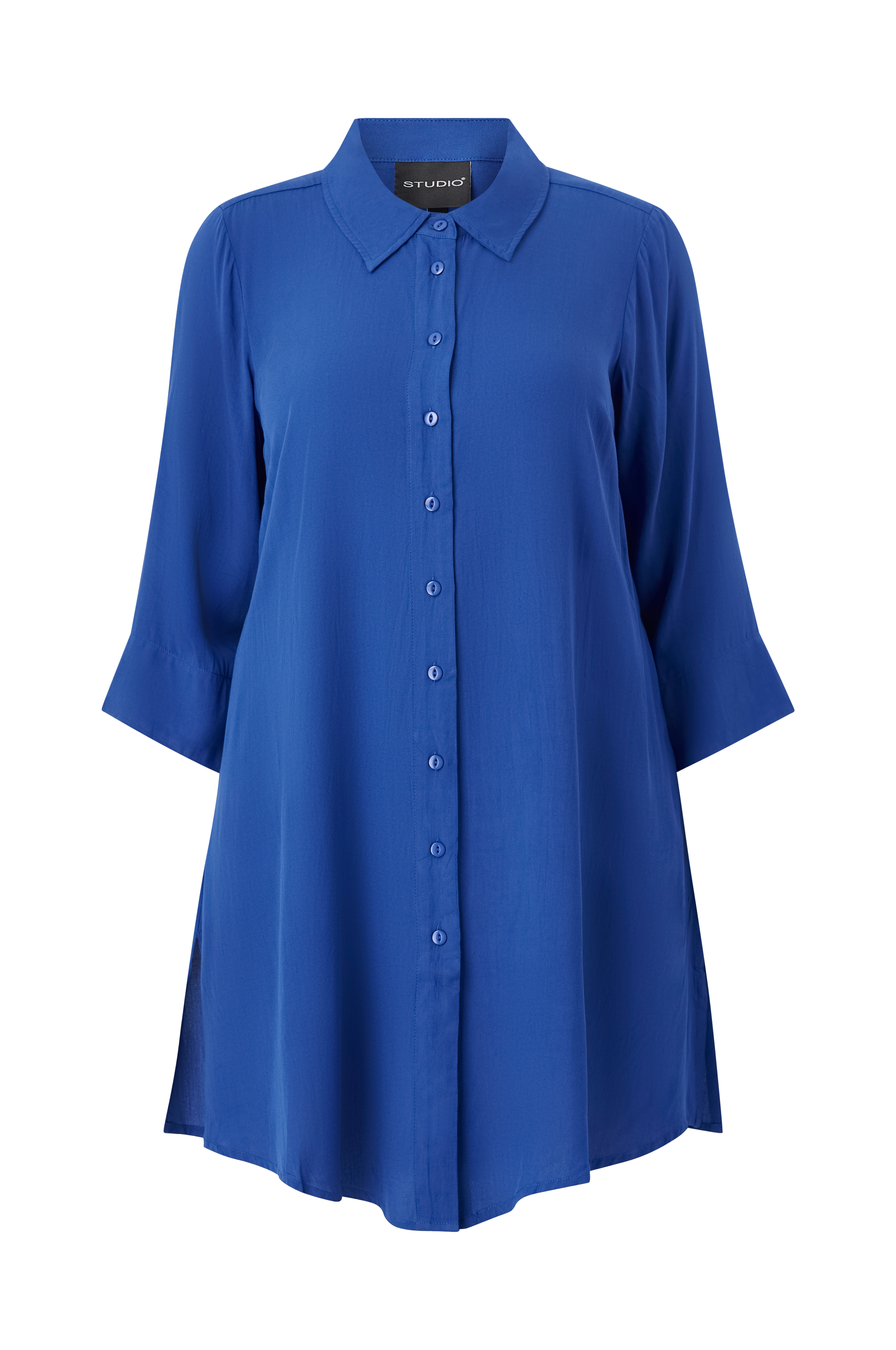 • Lang skjorte i viskose• Knapper foran• 3/4 lange ærmer• Slids nede i siderne• Modfold oppe bagved• Plusstørrelser