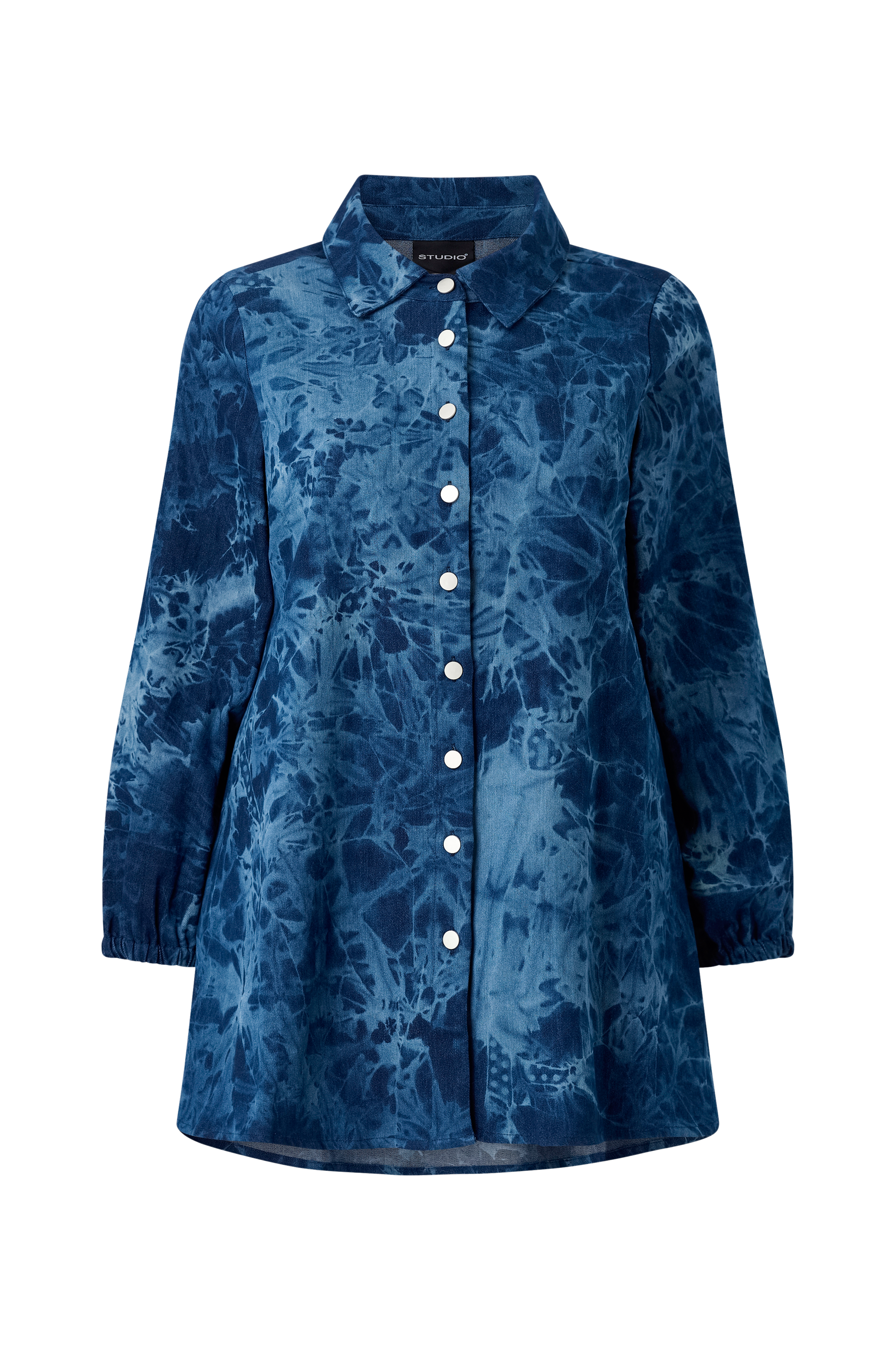 • Skjortekjole i bomuldsdenim med Batik-mønster• Klassisk skjortekrave• Lukning foran• Lange ærmer med elastik ved manchetterne• Modfold i ryggen• Plusstørrelser• Længde: 90 cm i størrelse S