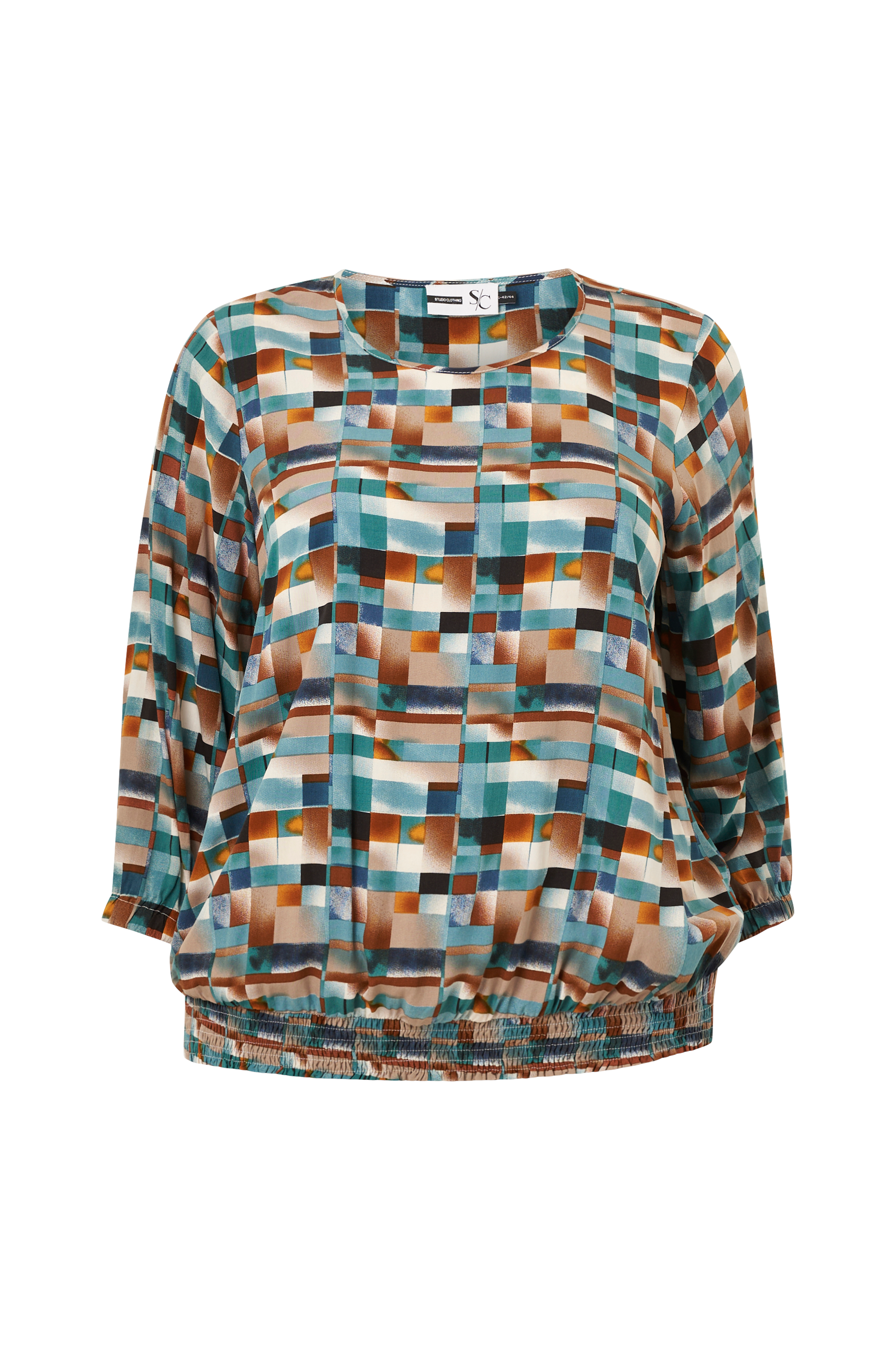 • Store størrelser• Lige model• Rund hals• Bredt, 3/4 langt ærme med elastik ved manchetterne• Smock ved nederste kant