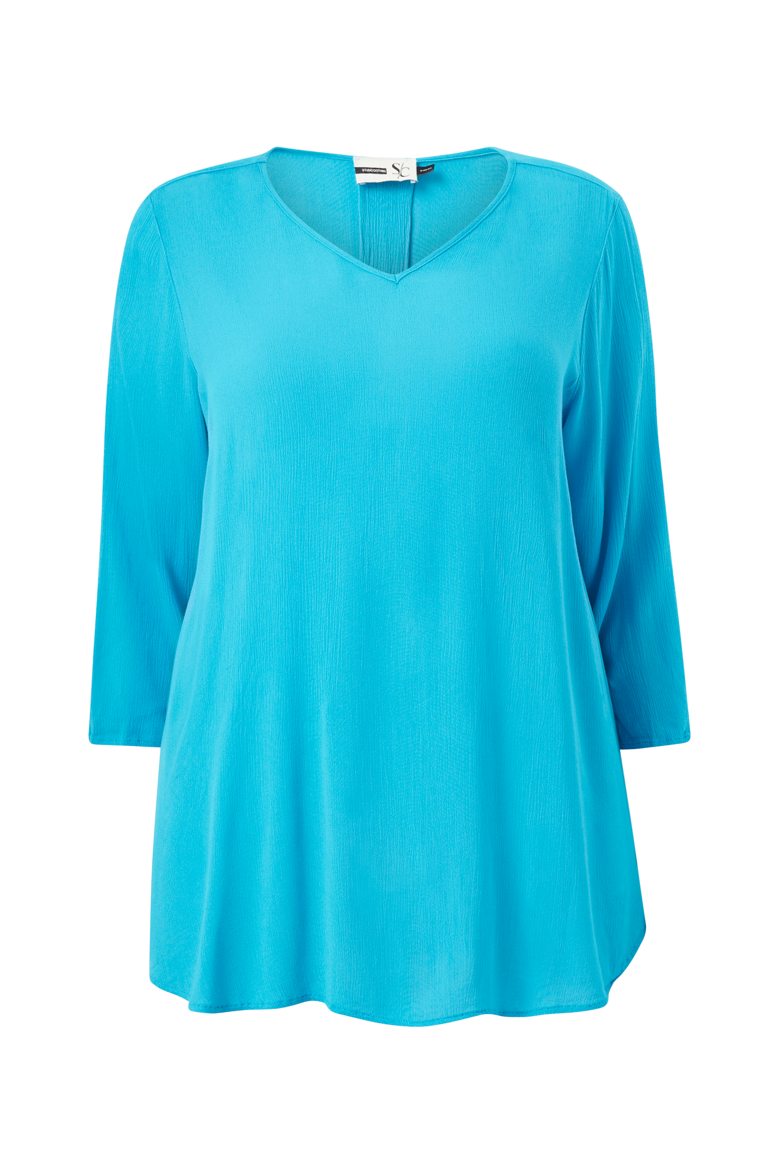 • V-udskæring• Lange ærmer• Tynd, rynket kvalitet• Store størrelser• Længde: 87 cm i størrelse S