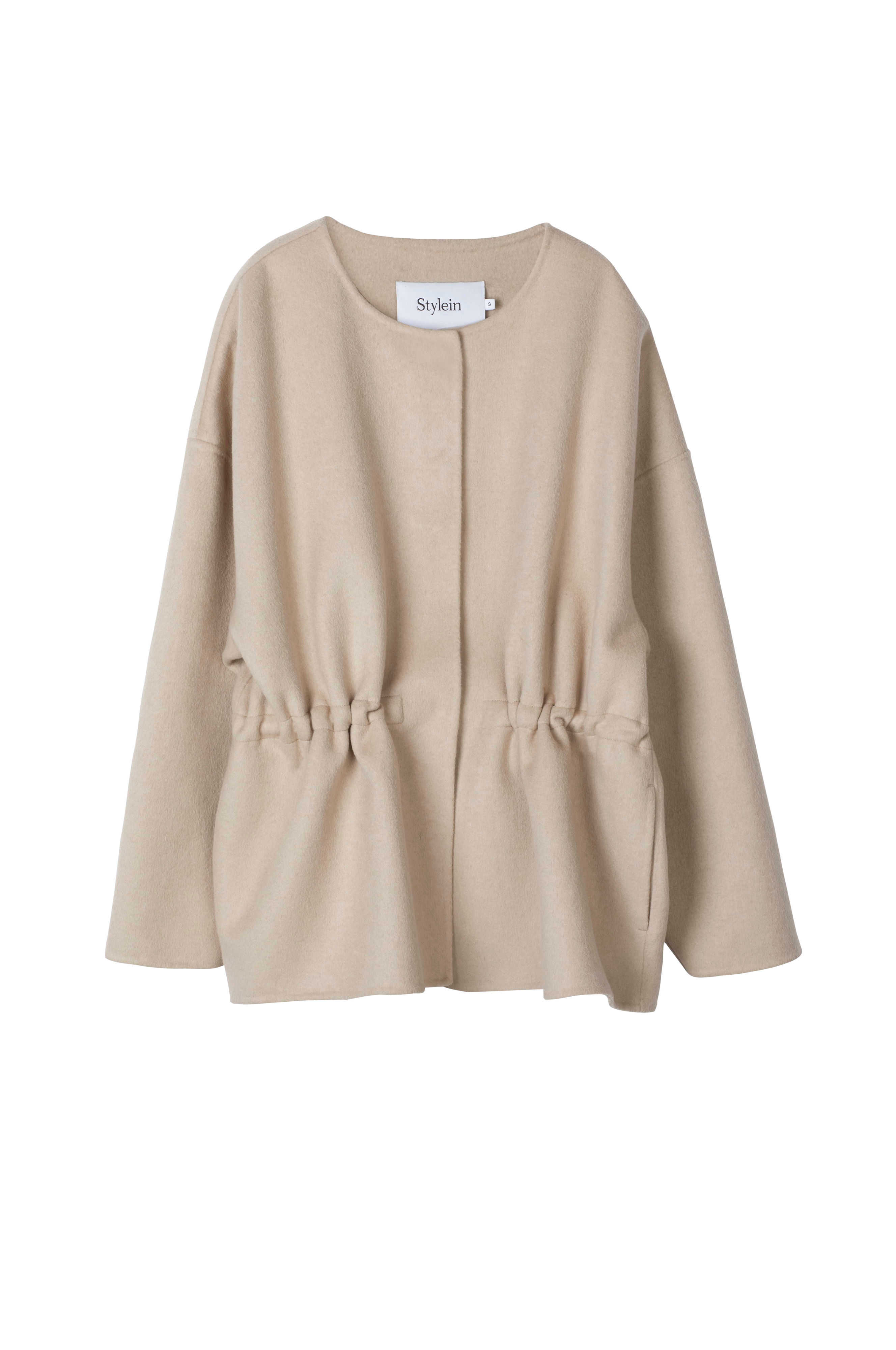 • Jakke i uldblanding med firkantet pasform• Rund halsudskæring• Rynket talje• Lommer i siderne• Lukning med tre skjulte knapper• Længde: 75 cm i størrelse S