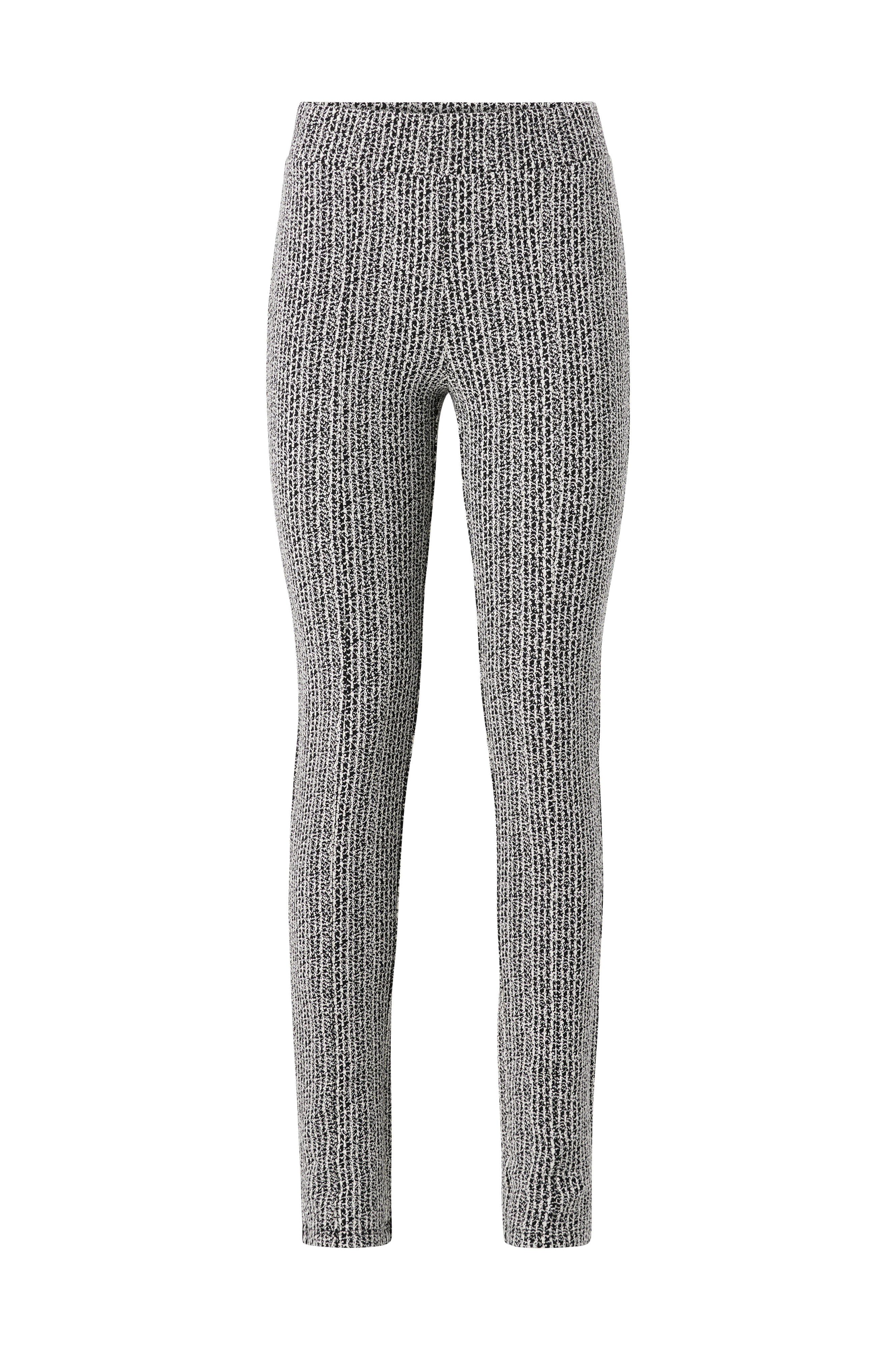 Leggings Daniella fra Stylein. Kropsnær model i kraftig jersey med pyntestukne delesømme foran som har skjult lynlås i benkanten. Påsyet linning med bred, indsat elastik. Indvendig benlængde 84 cm i str. S.