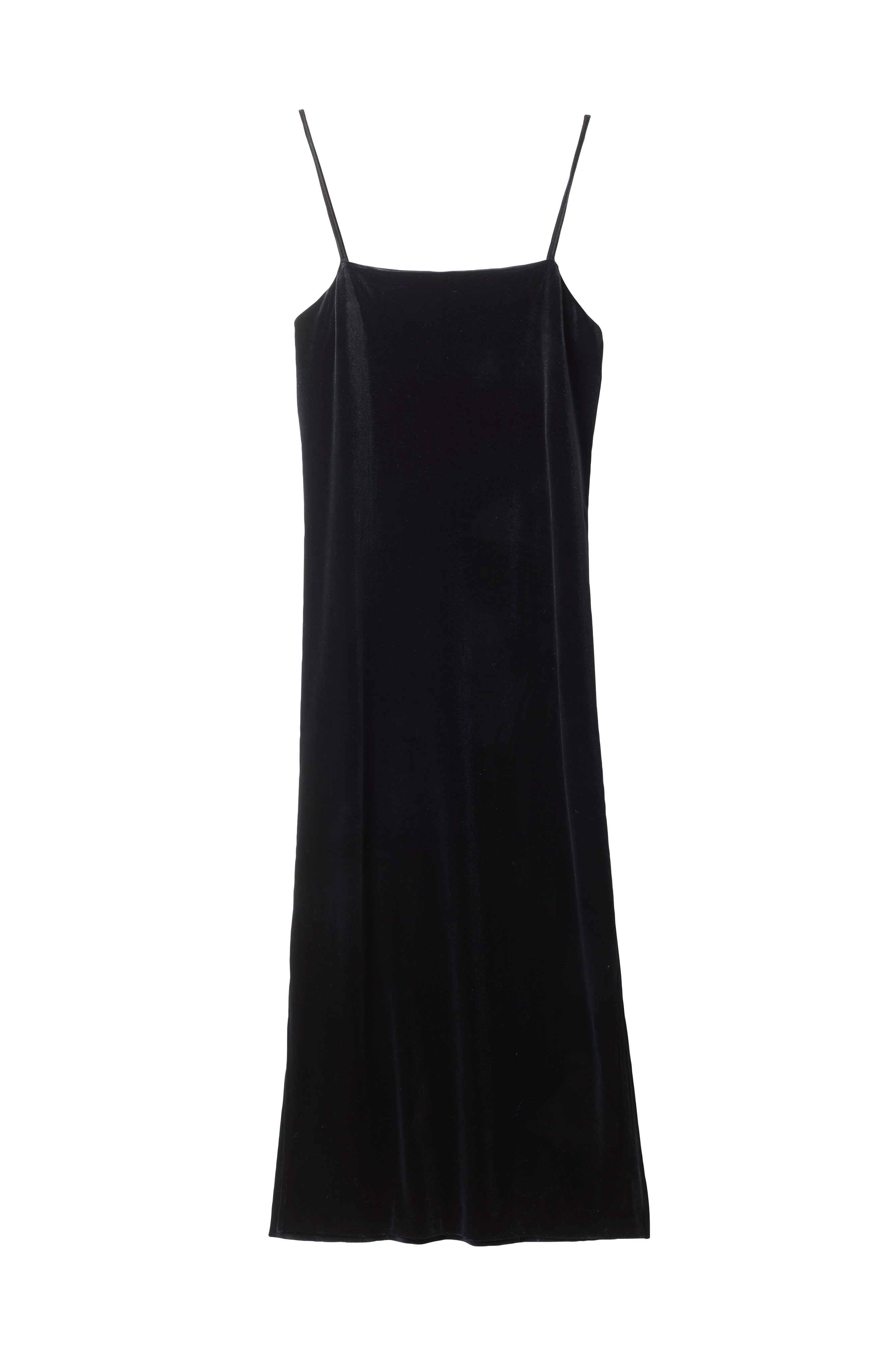 • Lang, ærmeløs model i fløjl• Lige snit i halsen og i nakken• Tynde, justérbare skulderstropper• Slidser nede i siderne• Længde: 140 cm i størrelse S