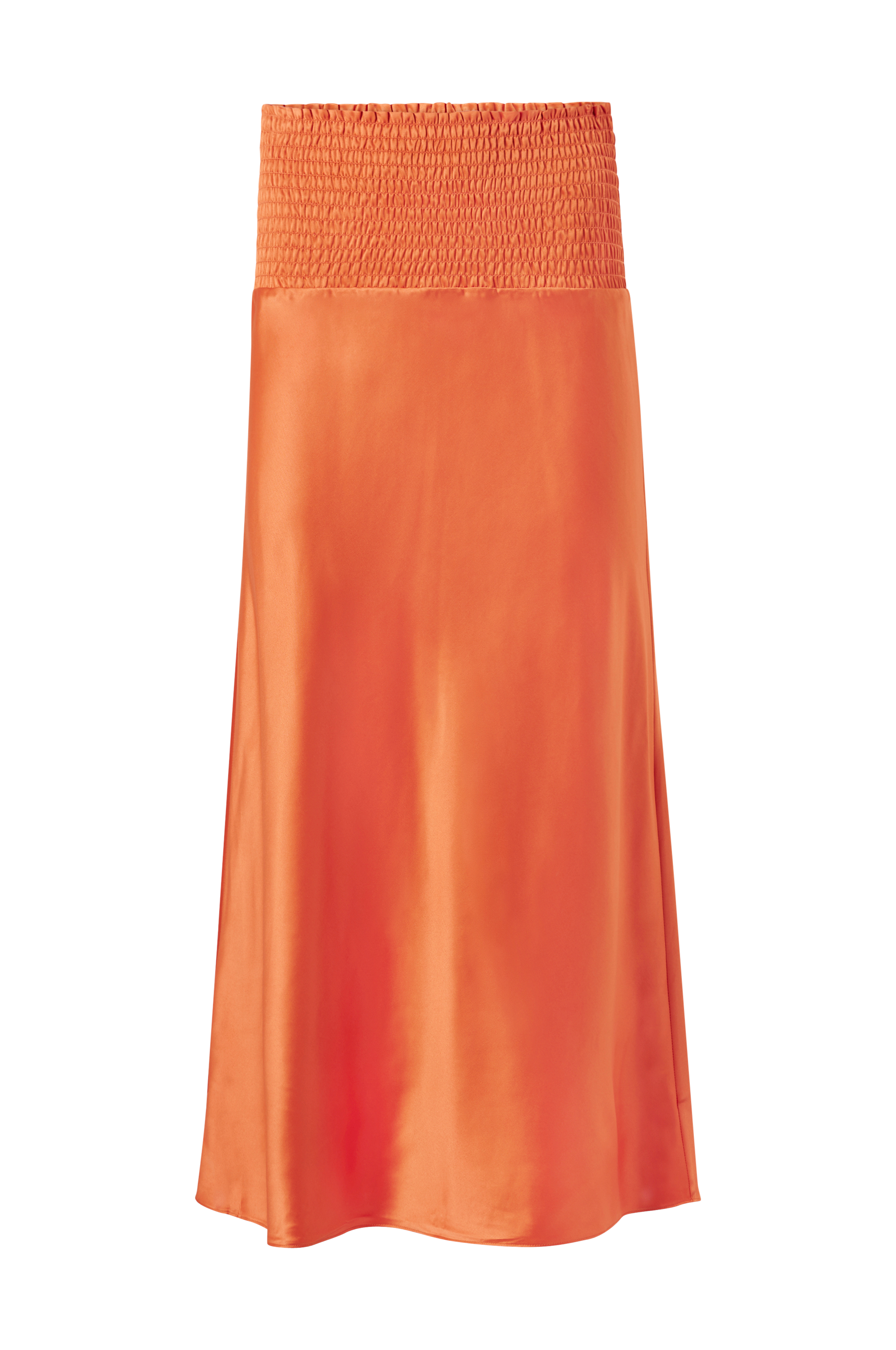 Nederdel Marion fra Stylein i A-formet model i satin med bred, elastisk smock foroven. Længde ca. 79 cm i str. S.