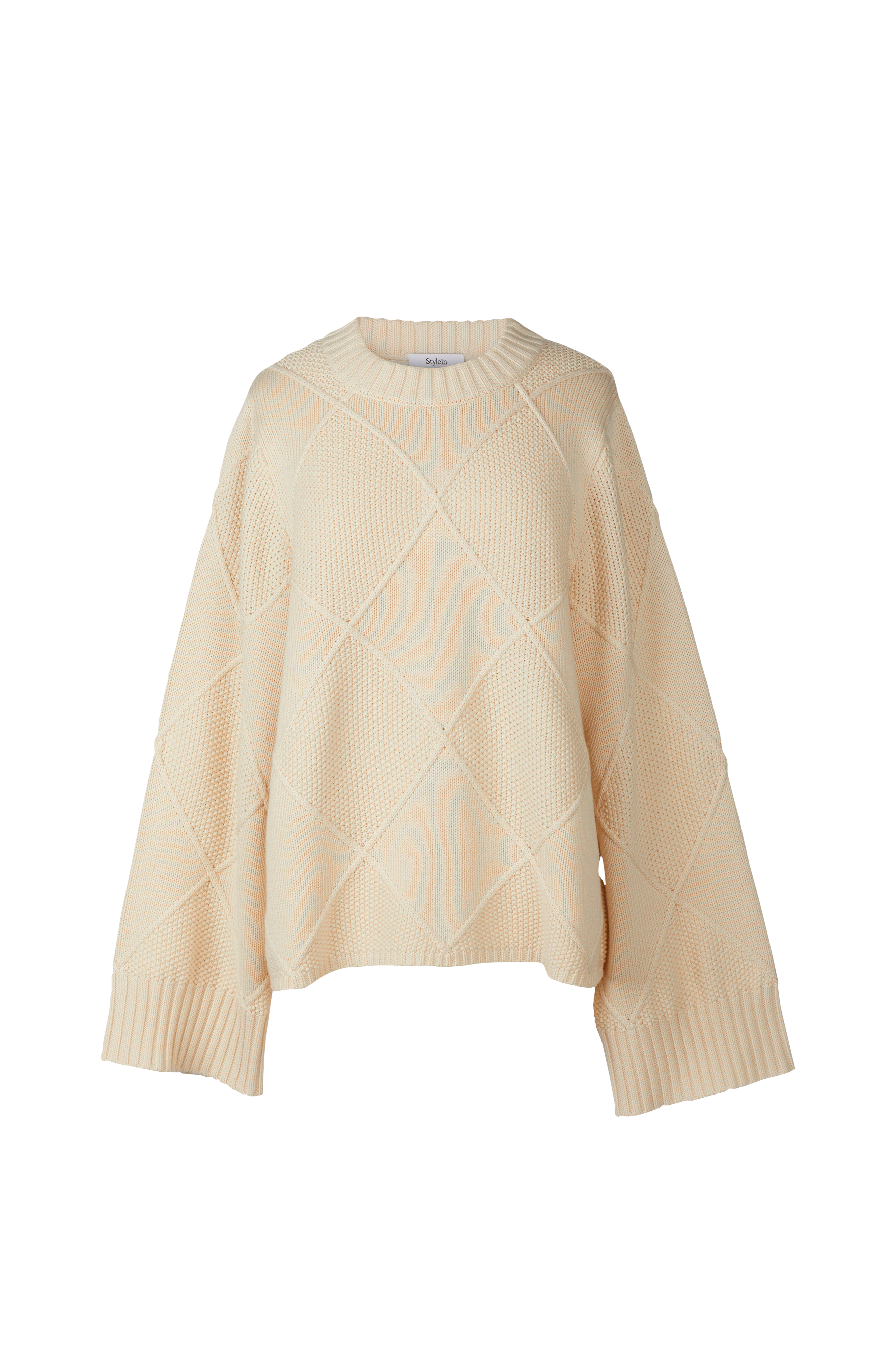 • Strukturstrikket trøje i uldmiks• Brede ærmer• Ribstrik i halsen og ved manchetterne