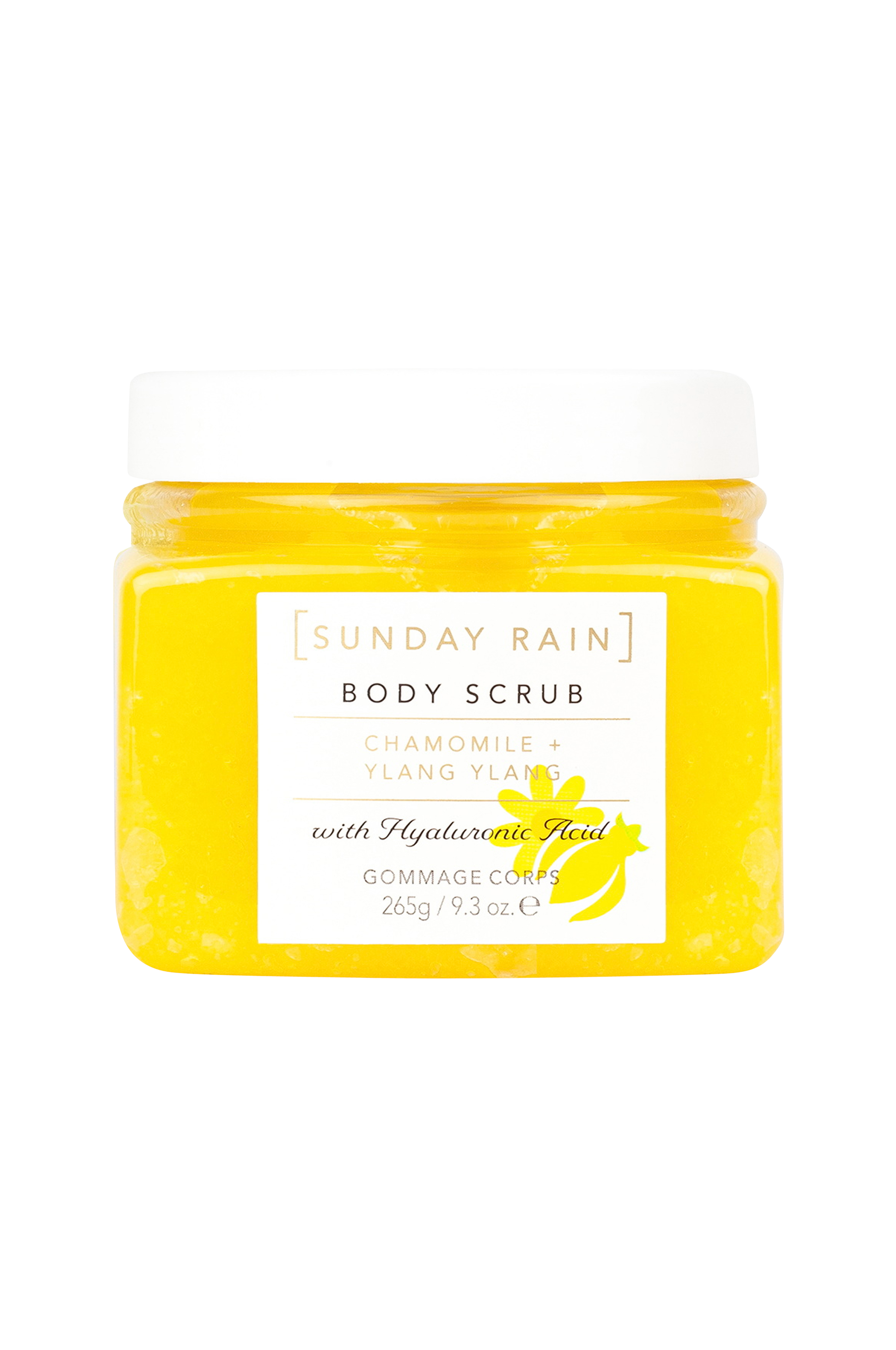 Poler din hud blød og glat med denne eksfolierende naturlige sukkerscrub beriget med beroligende kamille og opløftende Ylang-Ylang! Den piskede, cremede formel sammen med den fugtgivende hyaluronsyre vil efterlade huden ekstra blød og glat.