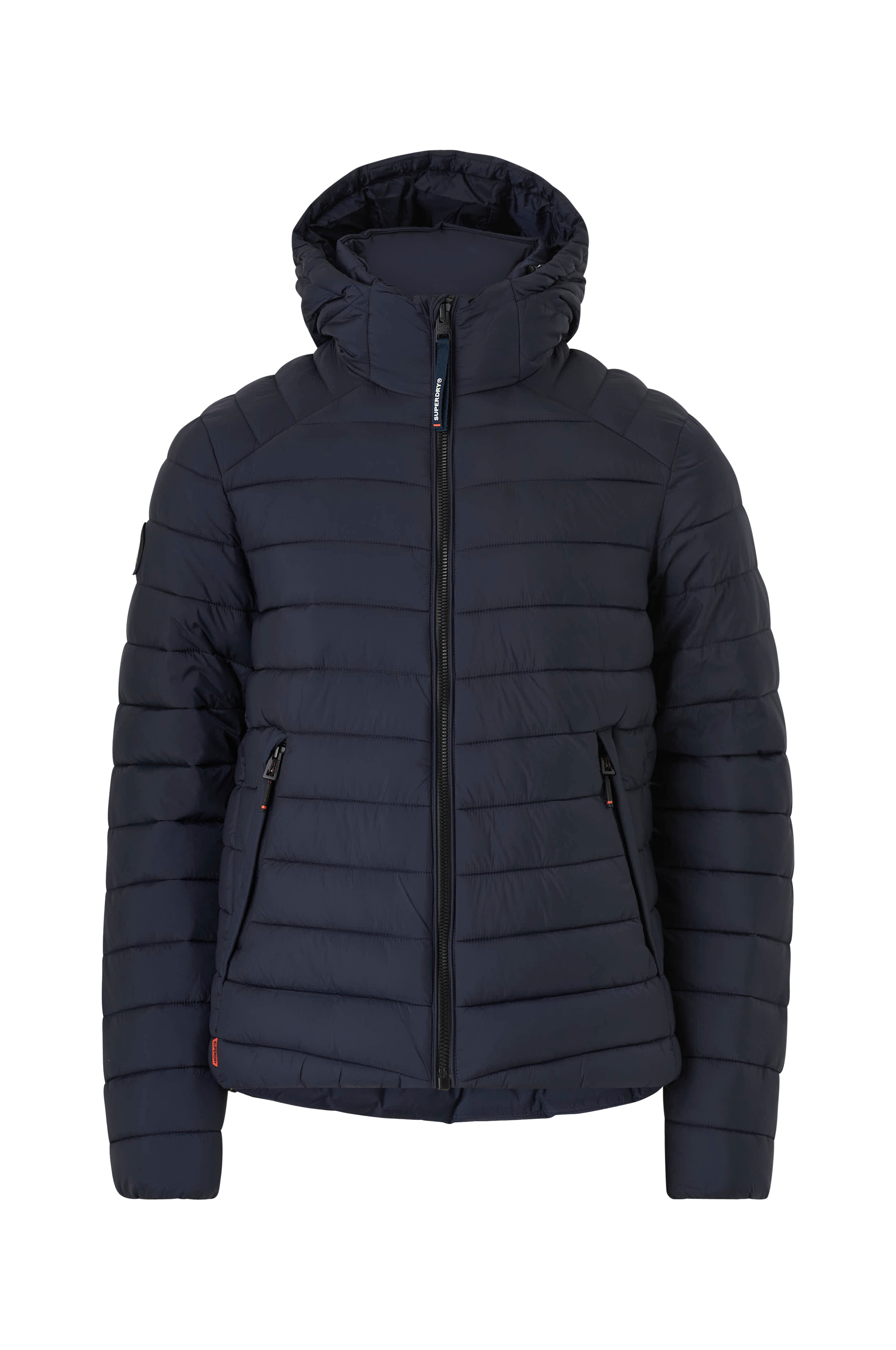 • Quiltet, foret jakke med fast hætte• Lynlås• Sidelommer med lynlås• En inderlomme i mesh• Elastik ved manchetterne• Træksnørre ved nederste kant• Længde: 73 cm i størrelse M