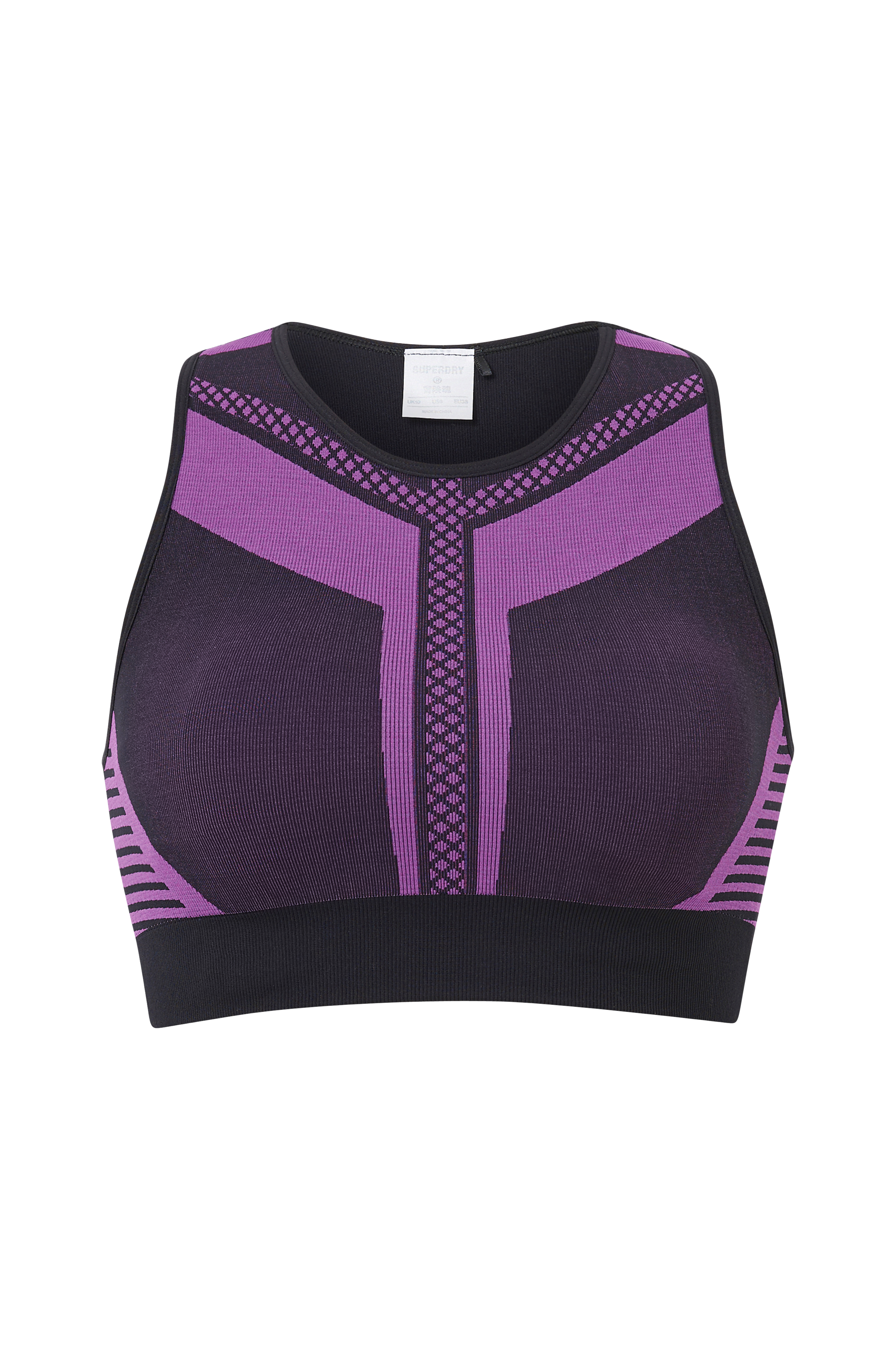 Sports-bh i sømløst design, fremstillet i stretchstof med kølende teknologi. Formpressede skåle og ribstrikket elastik i sømmen.