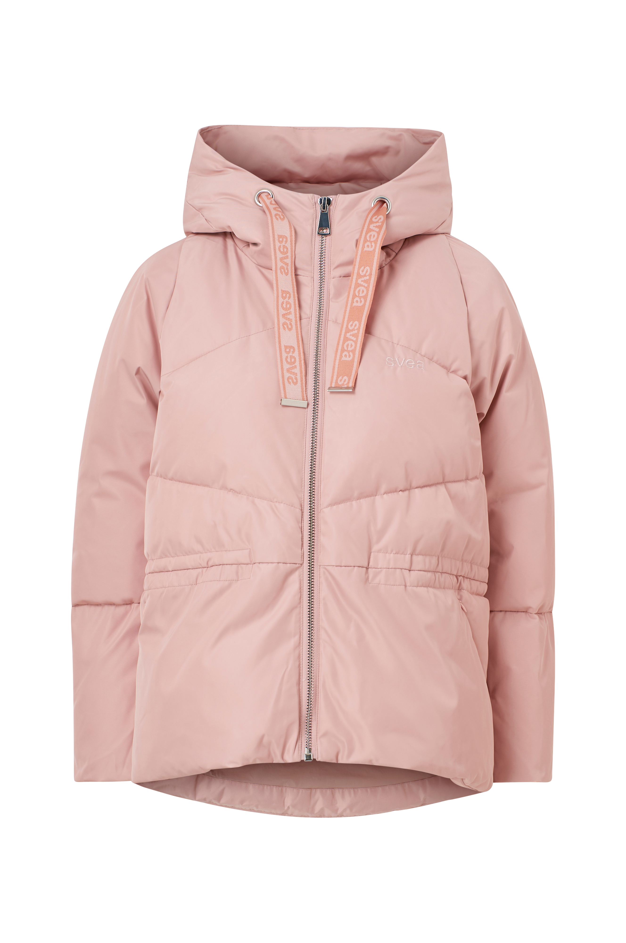 Jakke W. Waspy Jacket fra Svea med blød og lodden vattering. Vid, firkantet model med lynlås foran og skjulte lynlåslommer. Justerbar ærmekant med lynlås. Vatteret hætte med løbegang med bredt logobånd. Taljen kan justeres med indvendig løbegang. Jakken er noget længere bagpå. Længde ca. 66 cm i str. S.