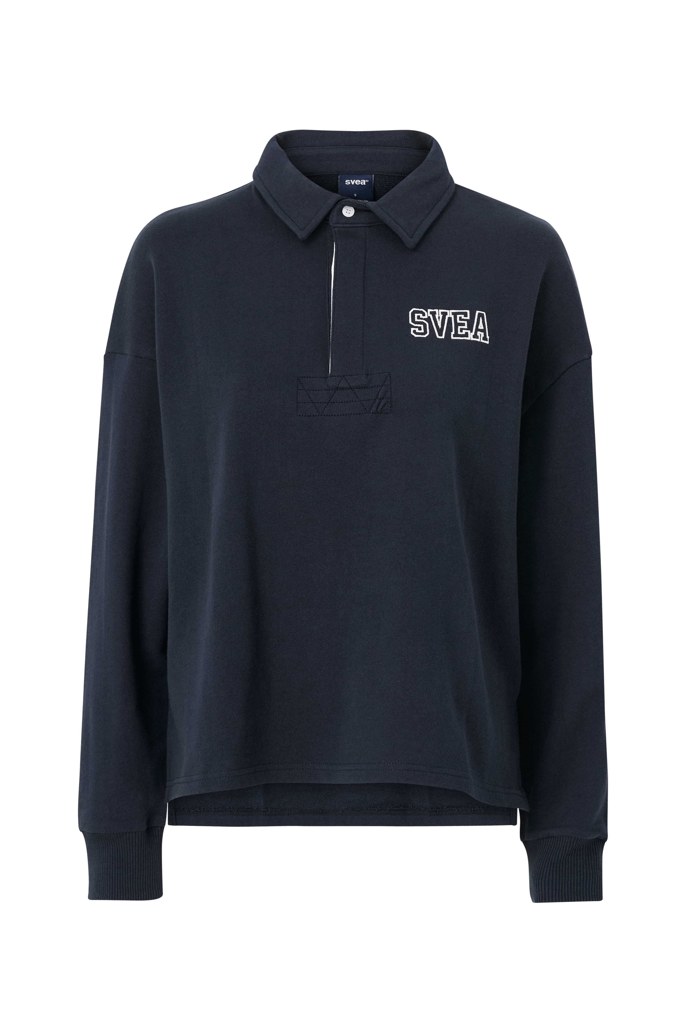 • Lige oversize model• Lille krave• Kort knaplukning foran med skjulte knapper• Broderi på brystet• Langt ærme med ribmanchet• Slids nede i siderne• Længere bagside