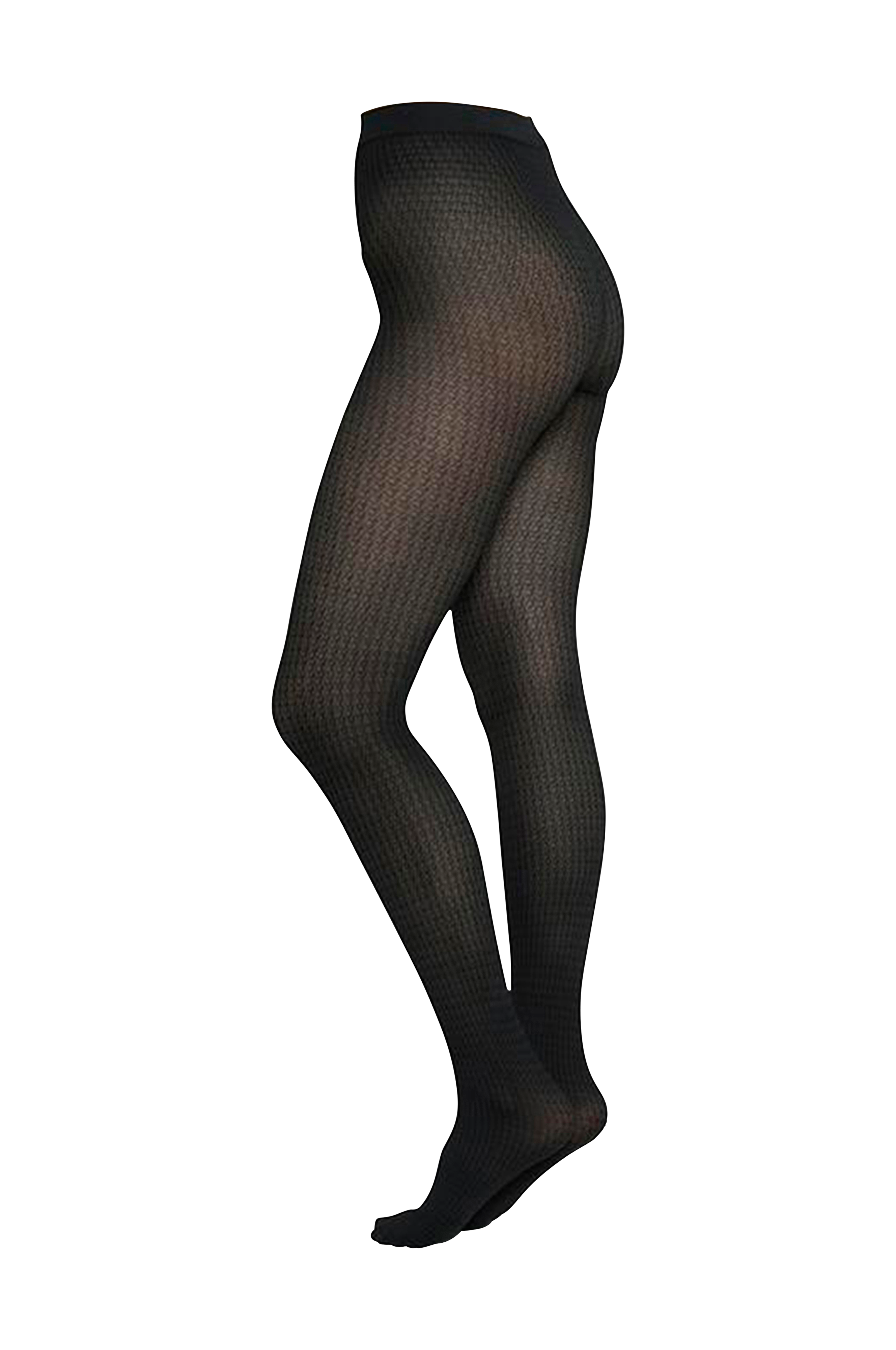 Strømpebukser Agnes Houndstooth Tights fra Swedish Stockings med klassisk hanefjedsmønster, bred talje, flade sømme og tåforstærkning. Bomuldsforet skridt. Semidækkende, 60 denier.