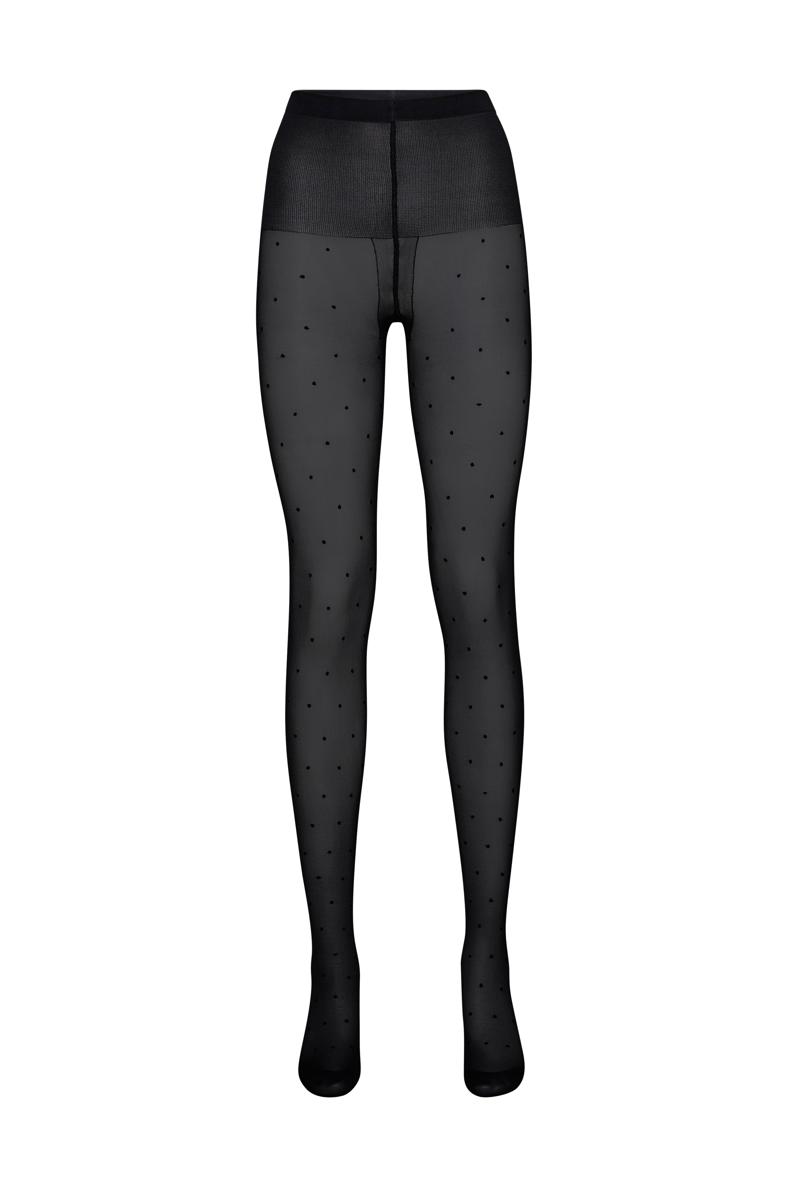 Strømpebukser Doris Dots Tights fra Swedish Stockings med sorte prikker. Genindvundet materiale. 40 denier.