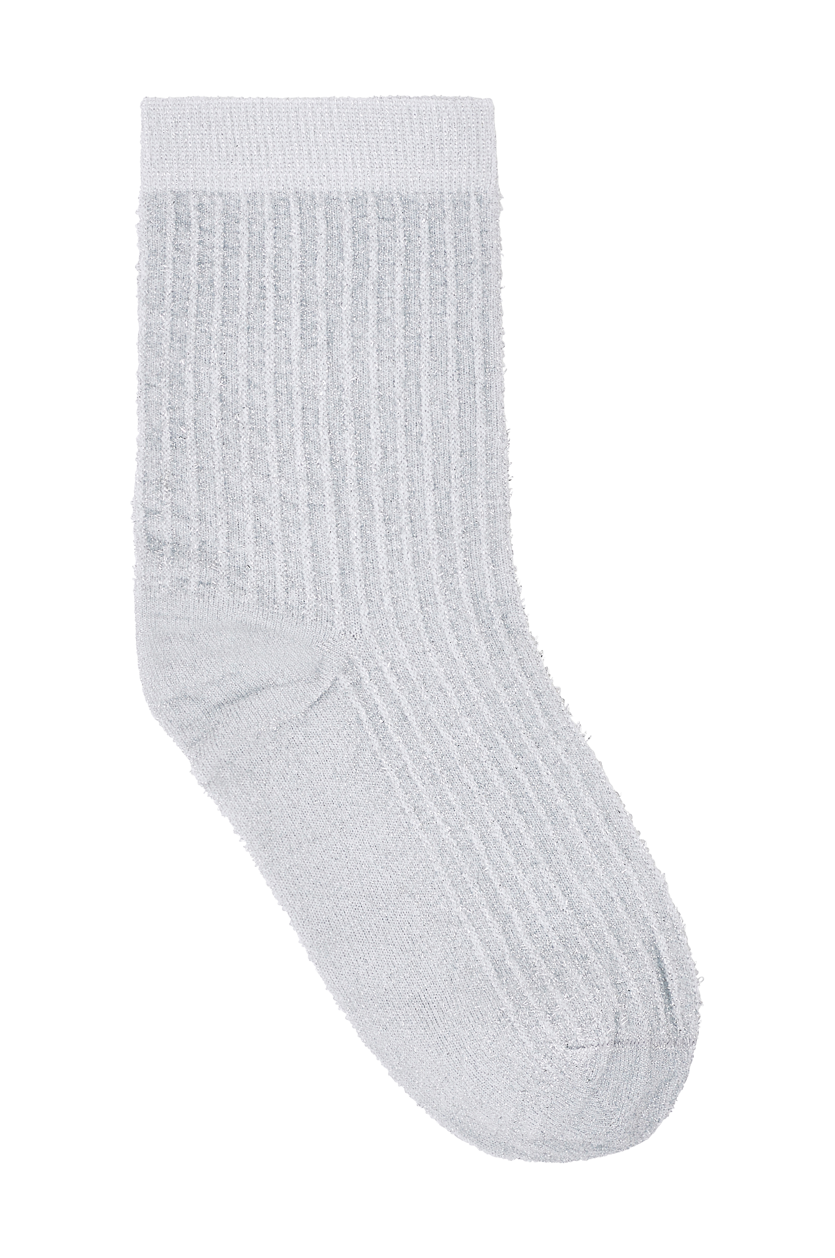 Strømper Stella Shimmery Sock 80 denier fra Swedish Stockings er ribstrikket i genindvundet garn med glimmertråd. Behagelig elasticitet foroven.