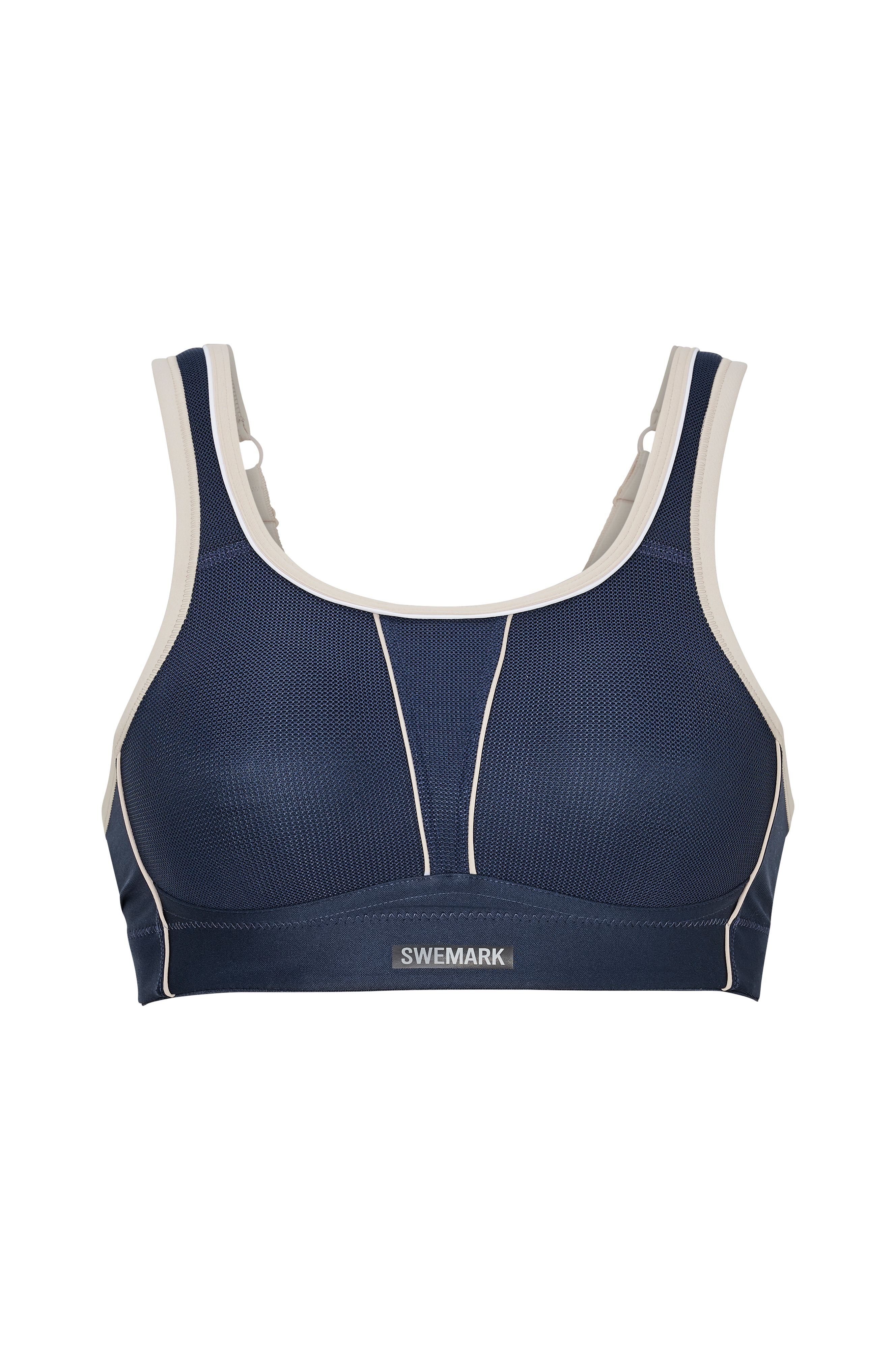 Sports-bh med ekstrem støtte til intensiv træning. Den giver fantastisk støtte, sidder godt og giver brystet en flot facon. Fremstillet i et materiale som beholder sin blødhed og komfort også under aktivitet eller hvis man har den på i længere tid. Med CoolMax som transporterer fugten væk. Formpressede skåle, dobbelt stof i skålene. Brede vatterede og regulerbare skulderstropper med en ring som let kan sættes sammen til en bryderryg. Lukning bagpå med Soft Seal for større komfort.