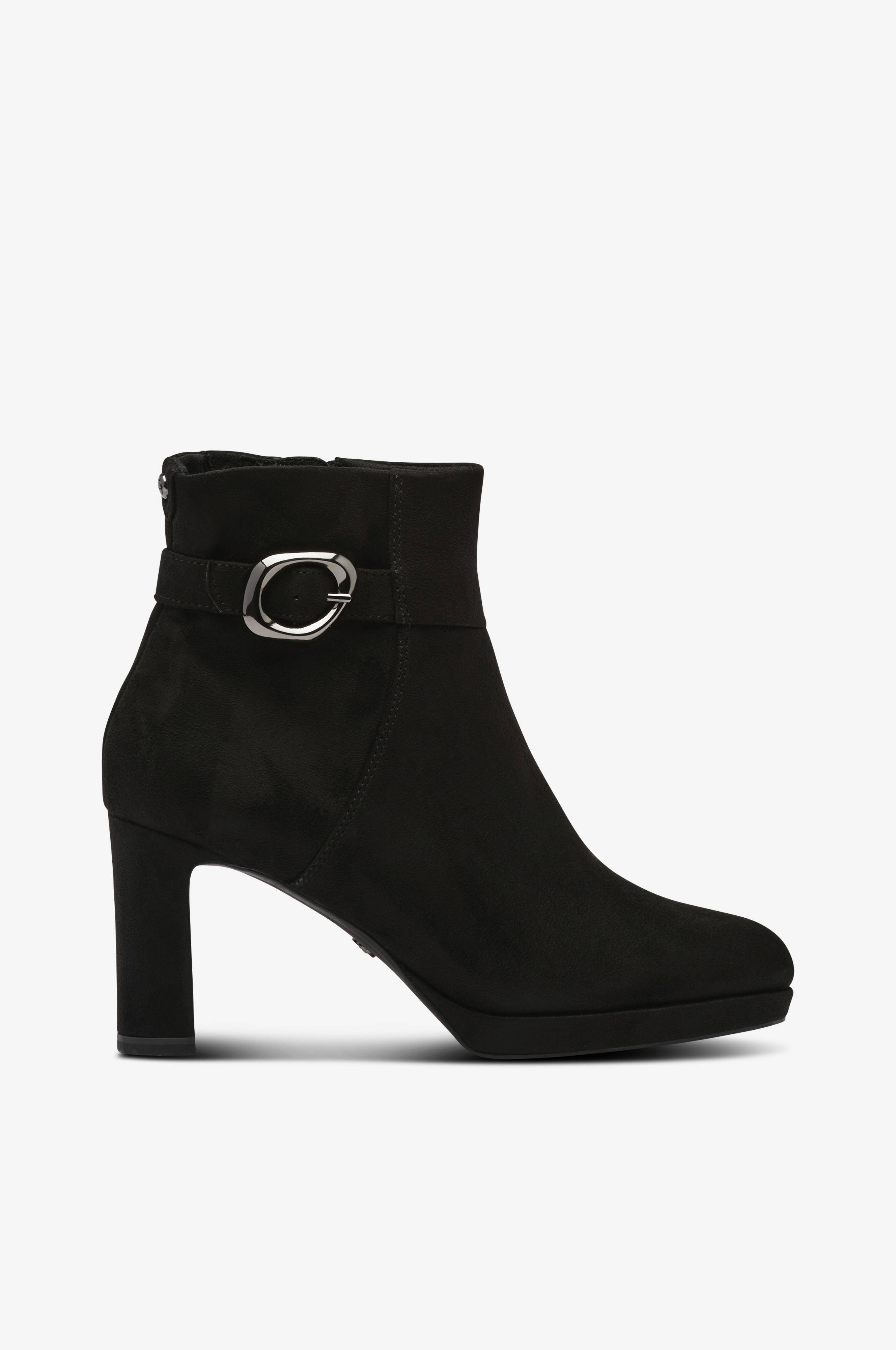 • Model i ruskindsimitation• Lynlås på indersiden af skaftet• Spænde på ydersiden• Lav platformssål• Beklædt hæl• Tekstilforing• Skafthøjde: 11,5 cm i str. 37• Hælhøjde: 8 cm