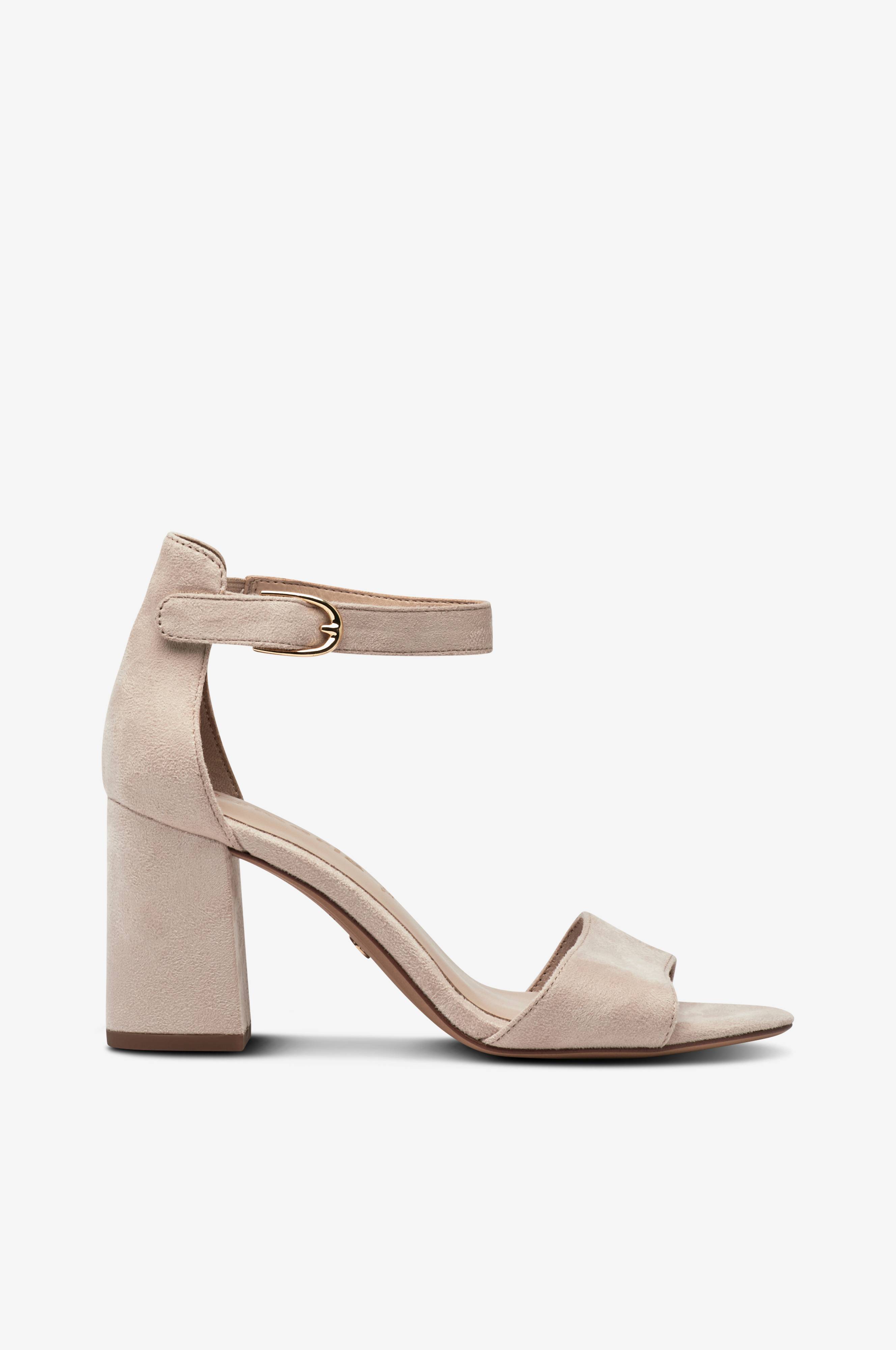 • Model i ruskindsimitation med åben snude• Justérbar rem med elastisk Vedhæftning• Blød polstret indersål• Beklædt hæl• Hælhøjde: 7 cm