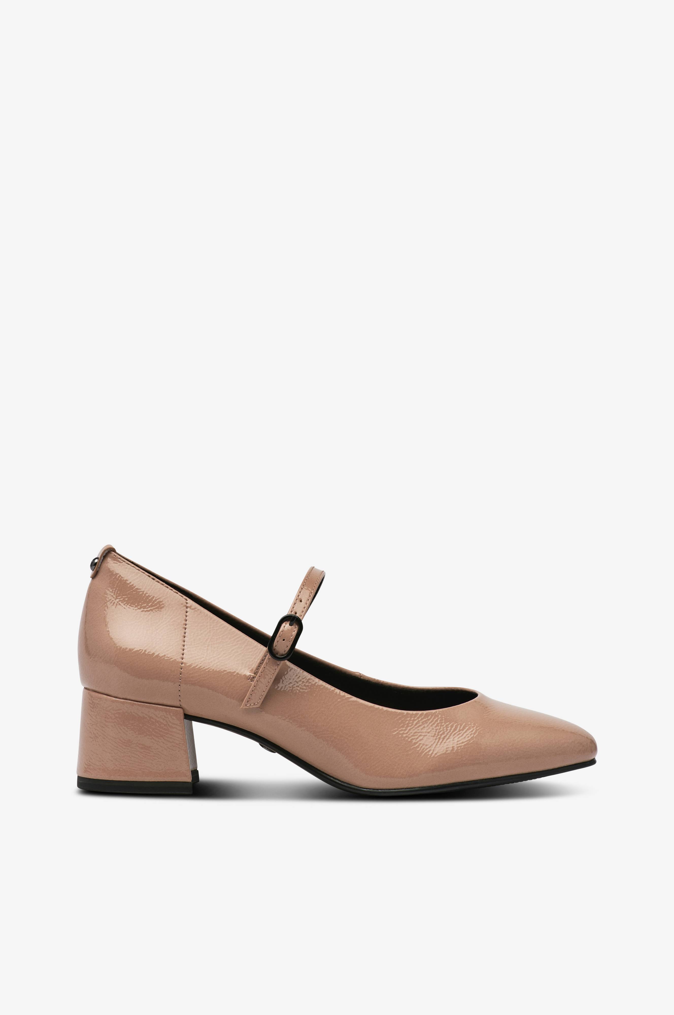 • Afrundet snude• Elastisk, justérbar ankelstrop• Kantet hæl• Blød polstret indersål• Hælhøjde: 5 cm
