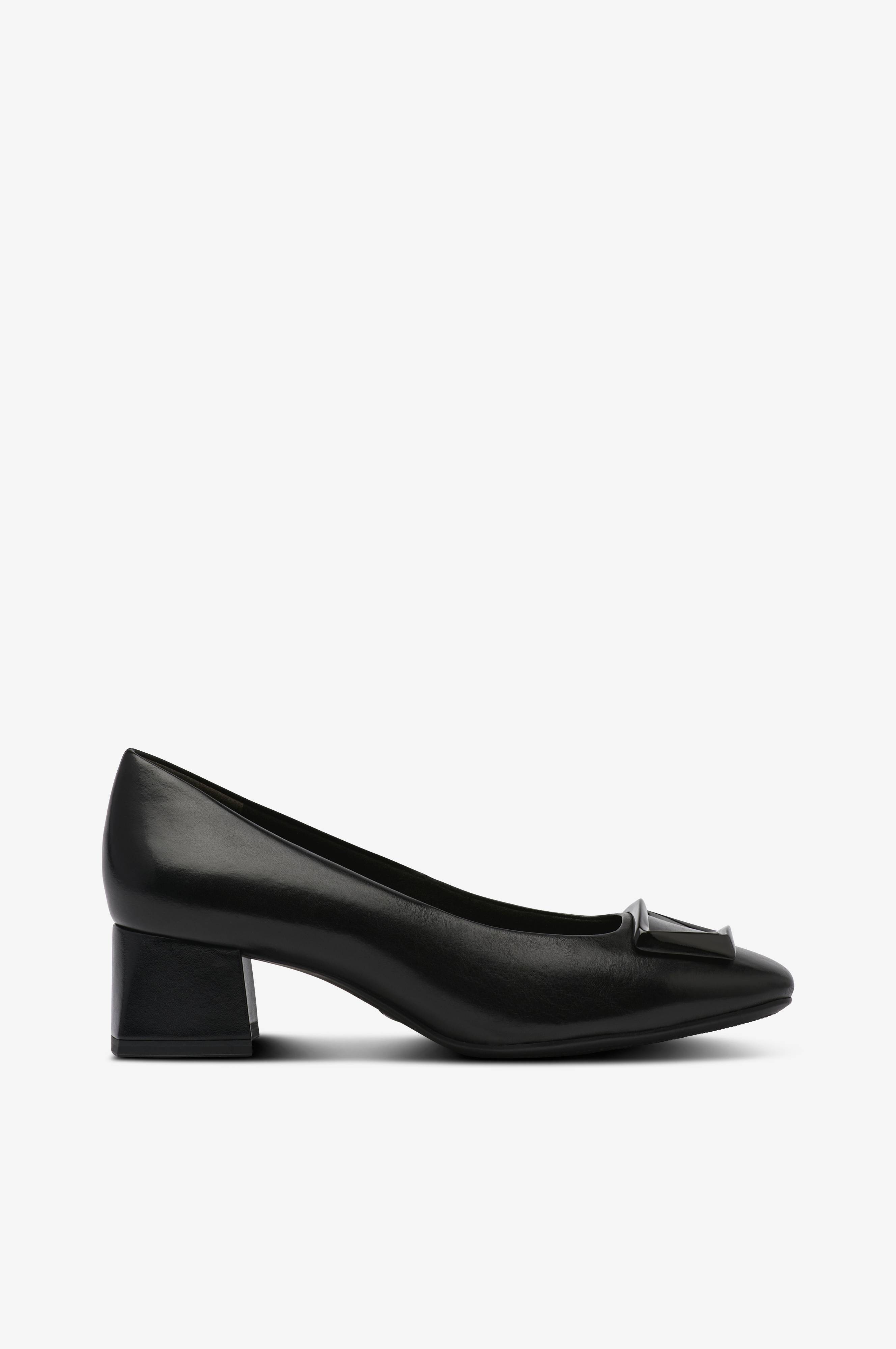 • Model i læder• Afrundet snude med dekoration• Kantet hæl• Blød polstret indersål• Hælhøjde: 4,5 cm