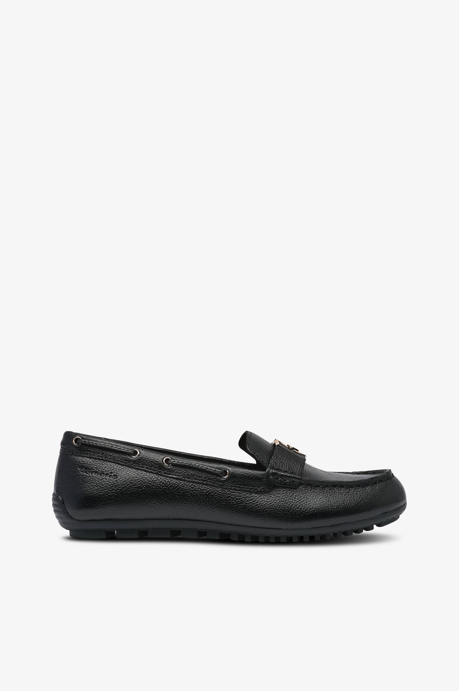 • Loafers i ruskind eller læder med slip-on-design• Dekorativt spænde foran• Dekorativ detalje omkring kanterne med grommet og strop• Riflet ydersål• Blød indersål• For i ruskind• Logoprint på den ene side