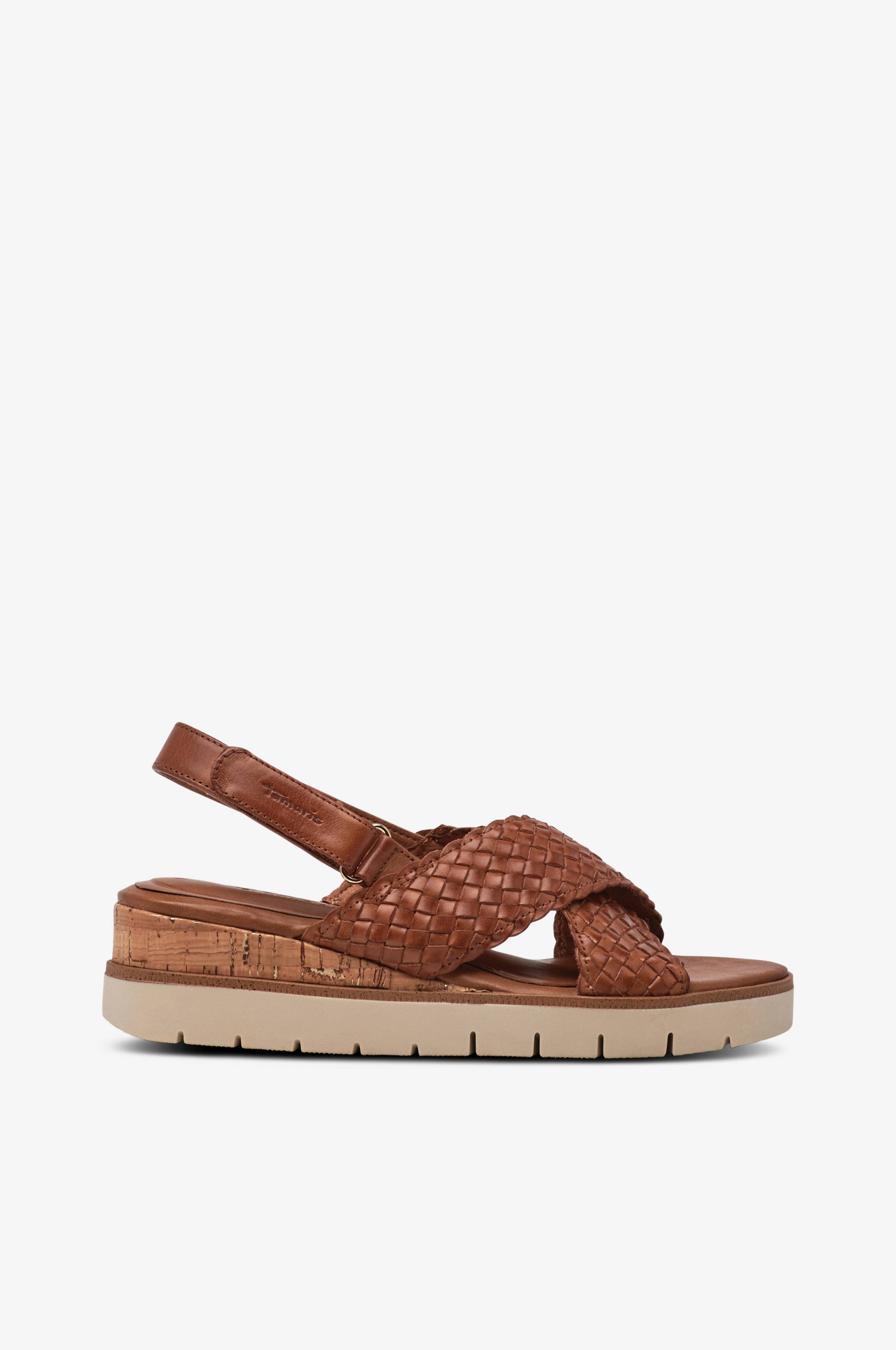 • Model i læder med flettede, krydsende remme • Afrundet snude • Justérbar hælrem • Blød polstret indersål • Wedgehæl i kork • Høj sål • Hælhøjde: 4,5 cm • Sålhøjde: 2 cm