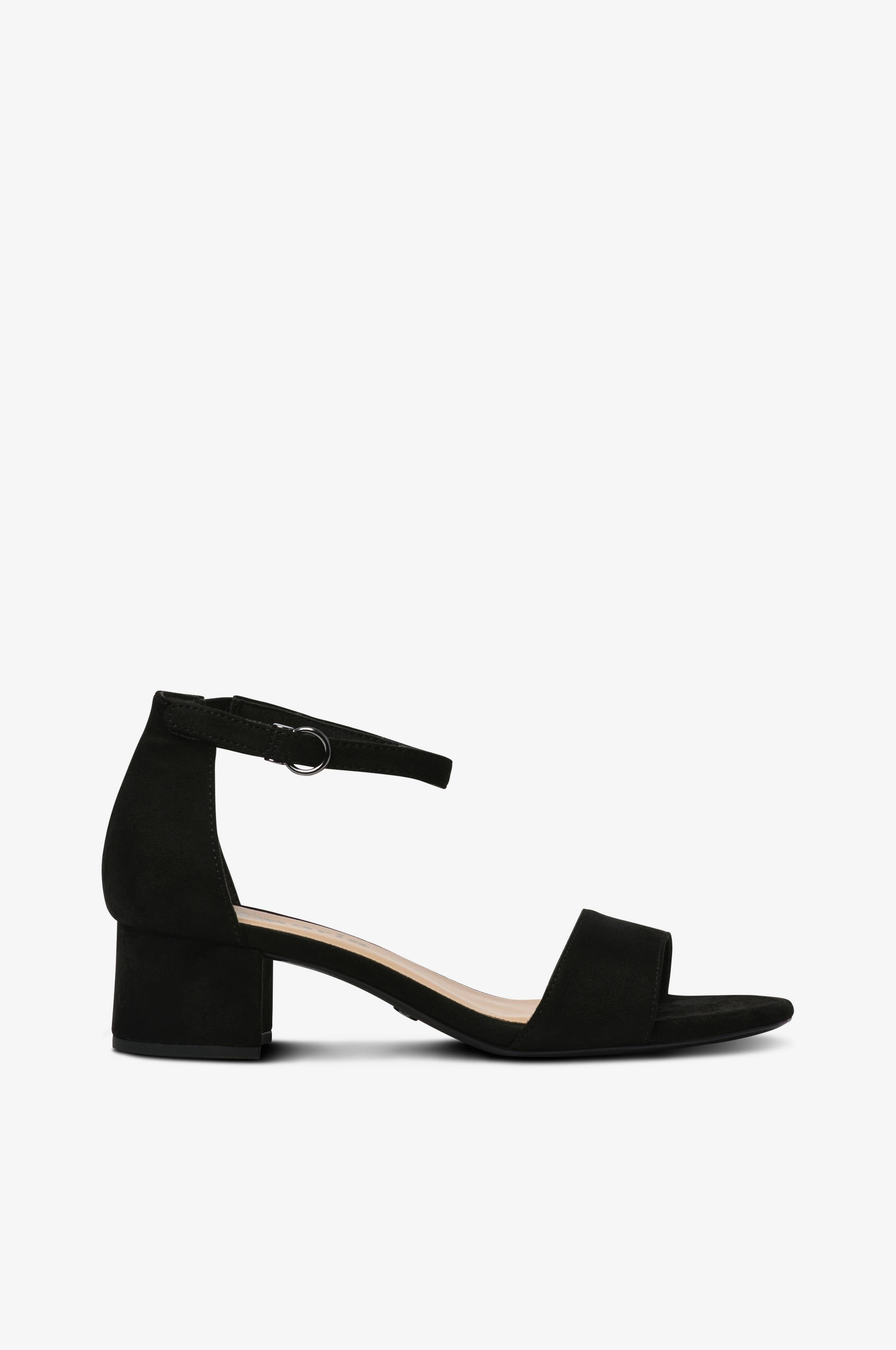 • Sandaler med hæl i blødt ruskindsmateriale• Rem ved tæerne• Dækket hæl• Rem med spænde ved anklen• Hælhøjde: 4,5 cm
