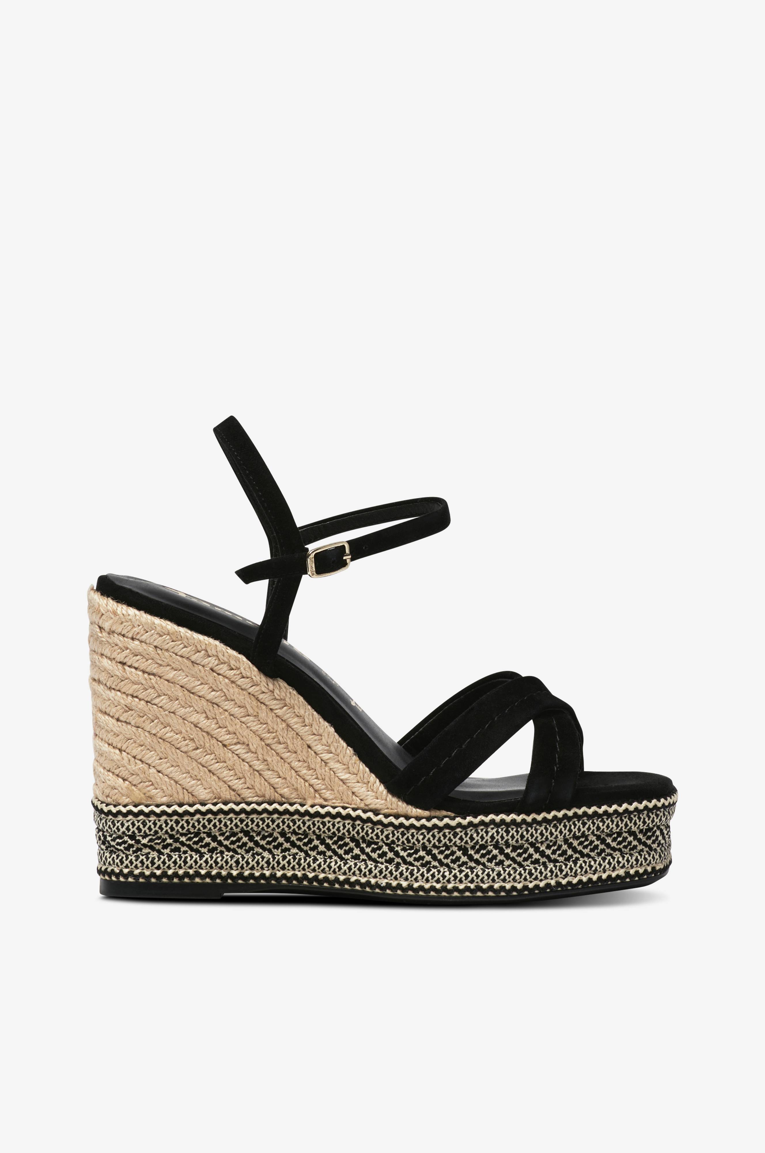 • Høje sandaler med rebbeklædt wedgehæl og platformsål• Tynde remme i ruskind• Spænde ved anklen• Hælhøjde: 11,5 cm• Sålhøjde: 3,5 cm