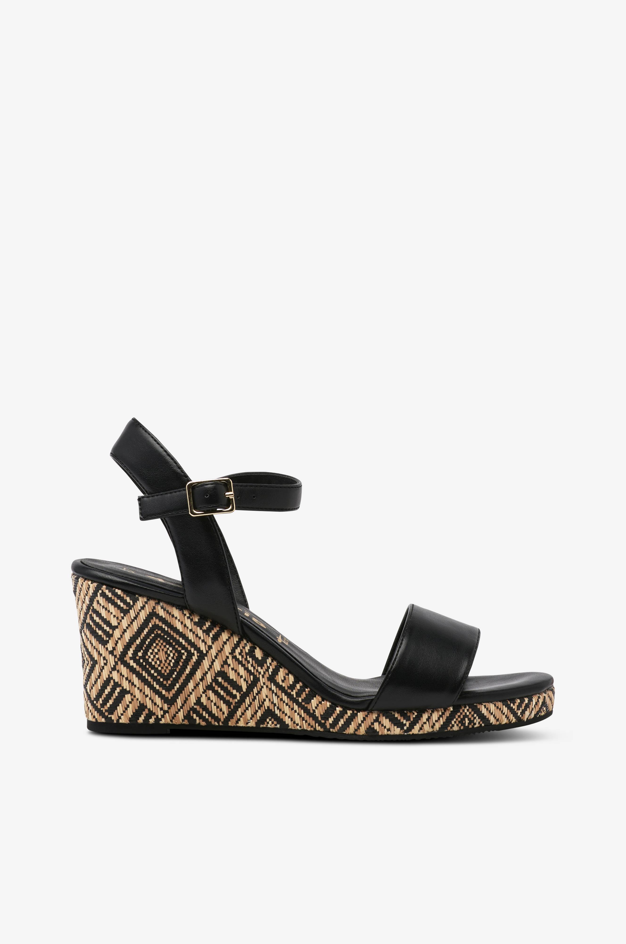 • Sandaler med hæl i imiteret læder• Ankelkæde med justérbart spænde• Wedgehæl med dekorativt mønster• Ydersål i gummi• Hælhøjde: 6,5 cm
