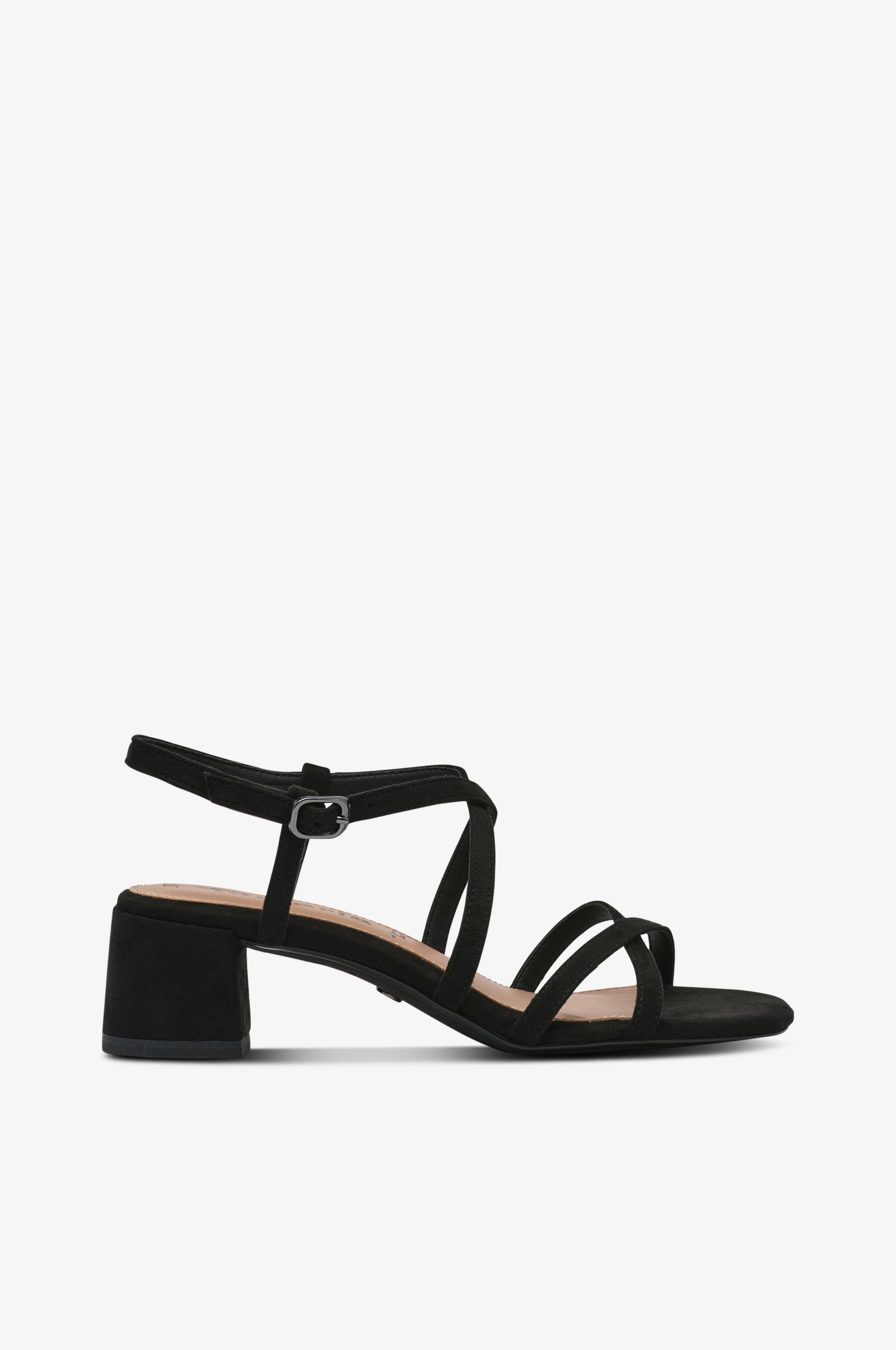 • Model med tynde remme• Lige snude• Justérbar ankelstrop med elastisk Vedhæftning• Blød polstret indersål• Beklædt hæl• Hælhøjde: 5 cm