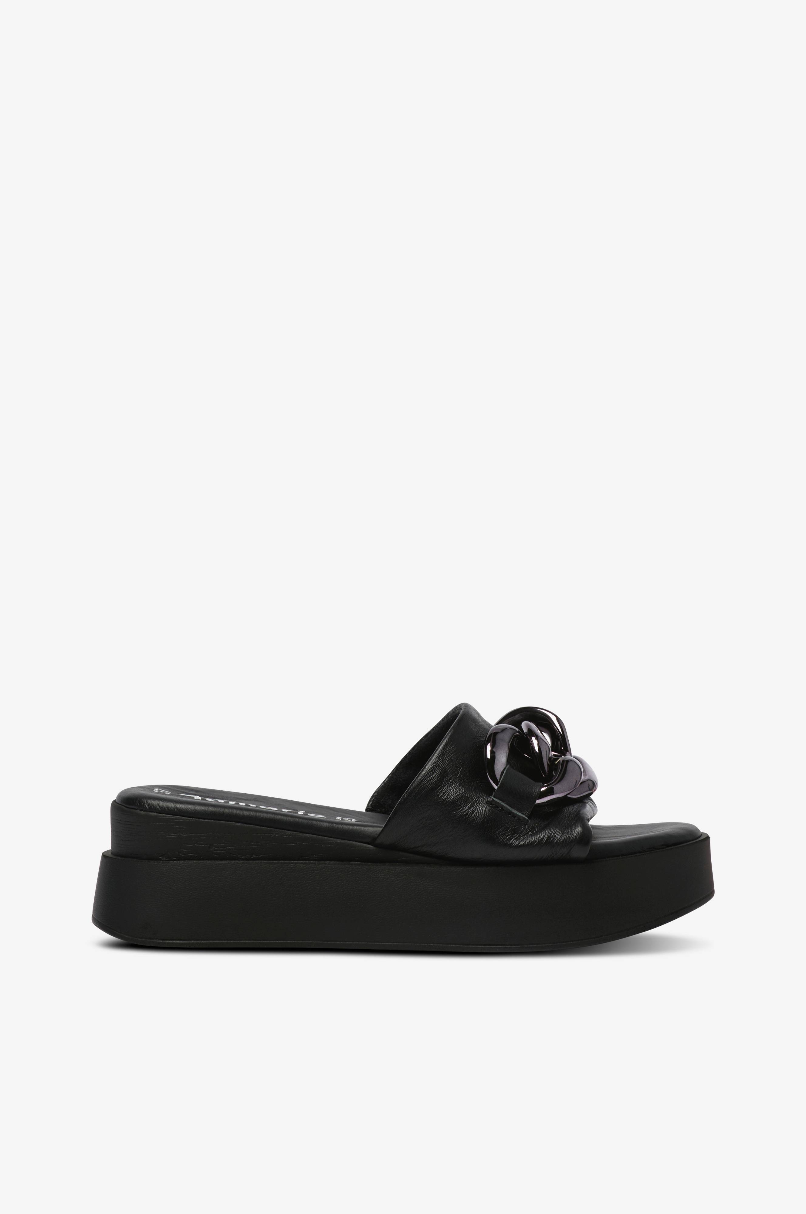 • Rem i læder med dekorativ kæde• Kileformet platformsål• Sålhøjde: 3,5 cm• Hælhøjde: 6 cm