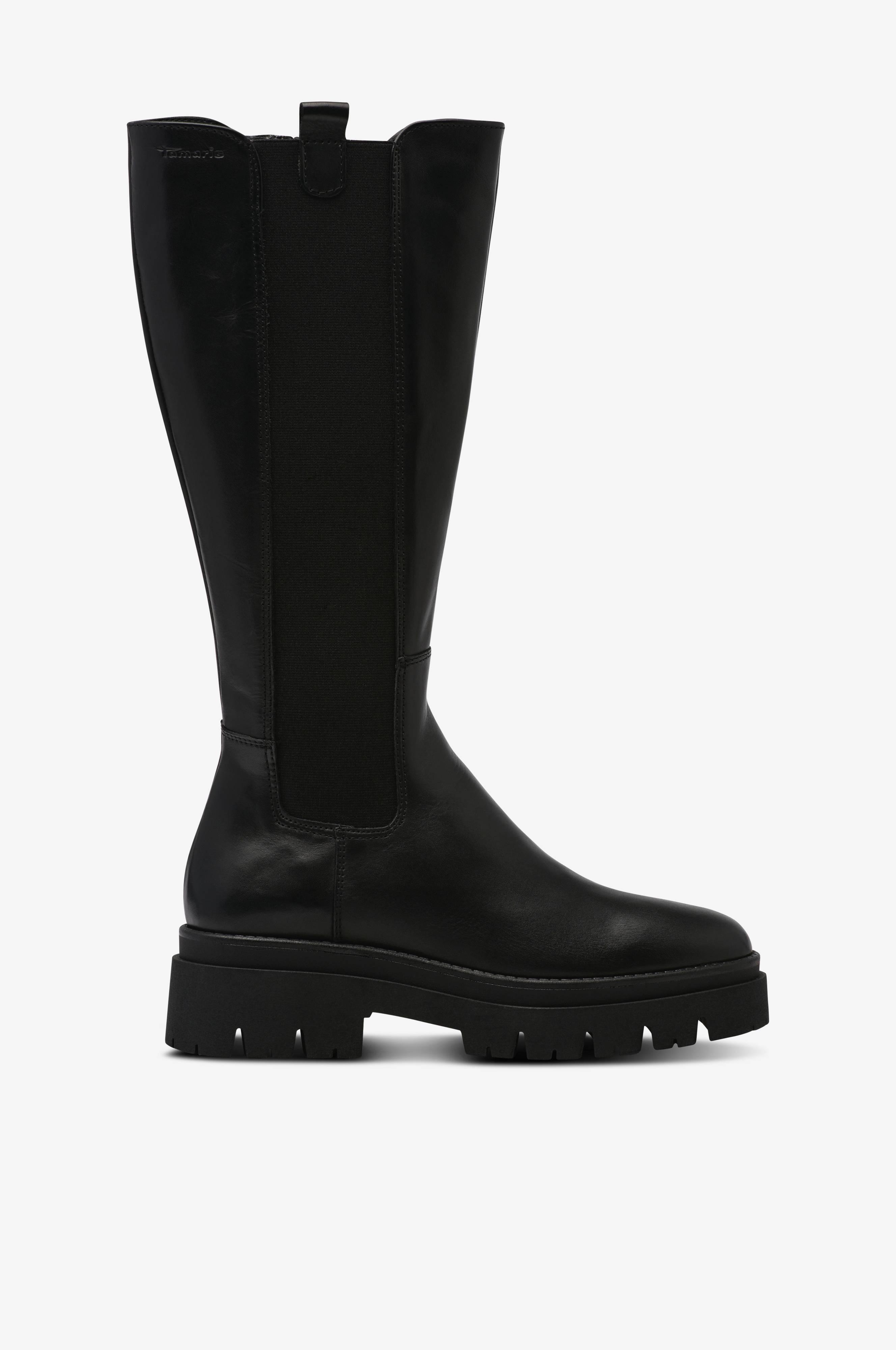 • Model med bredt elastisk panel på ydersiden og trækstrop • Lynlås på indersiden af skaftet • Tekstilforing • Grovmønstret sål • Sålhøjde: 3 cm • Hælhøjde: 5 cm • Skafthøjde: 35,5 cm i str. 37