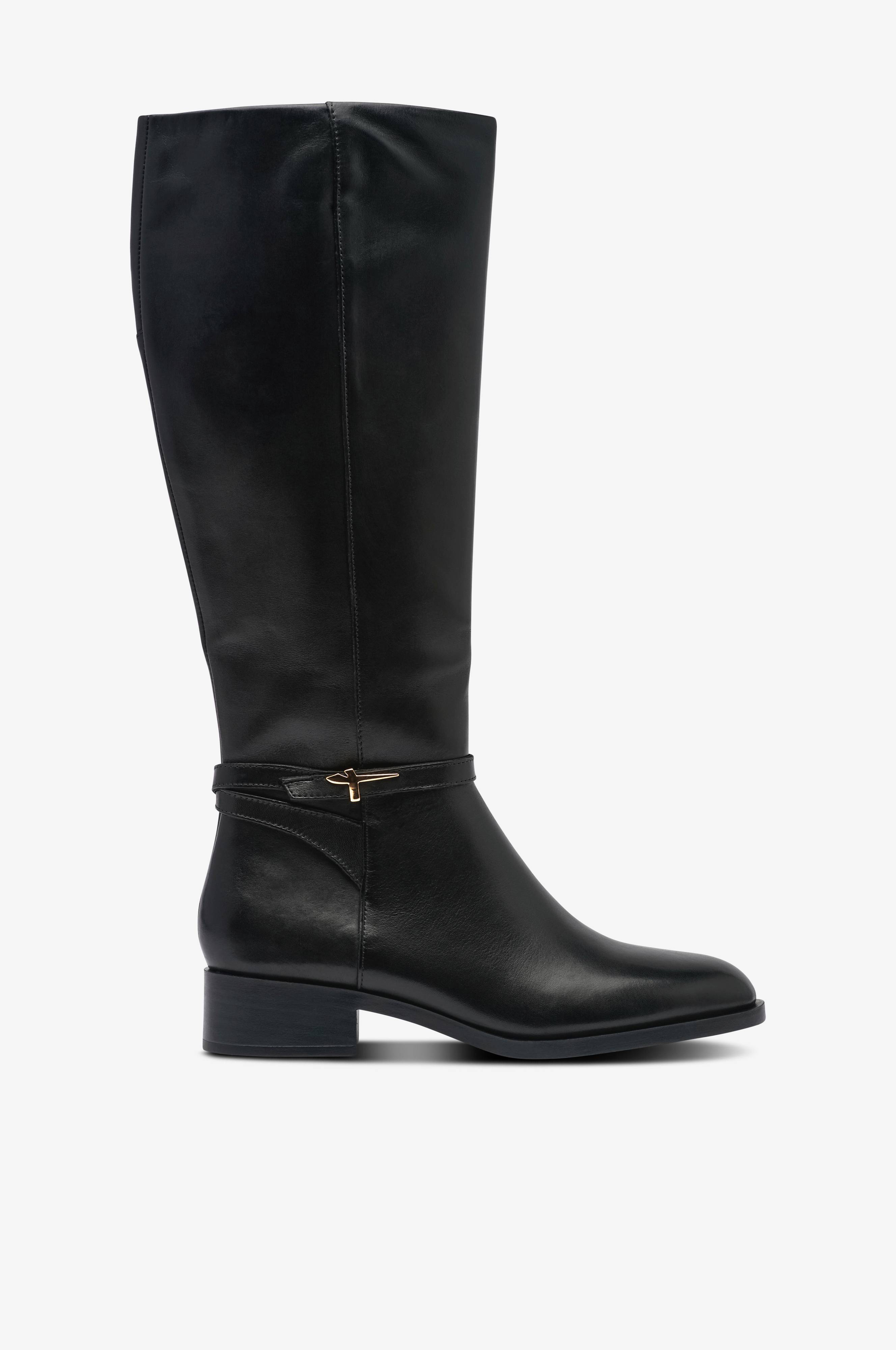 • Øvredel i læder• Lynlås på indersiden af skaftet• Elastisk panel på indersiden af skaftet• Dekorativ rem om anklen• Inderfor i tekstil• Skafthøjde: 37 cm i str. 37