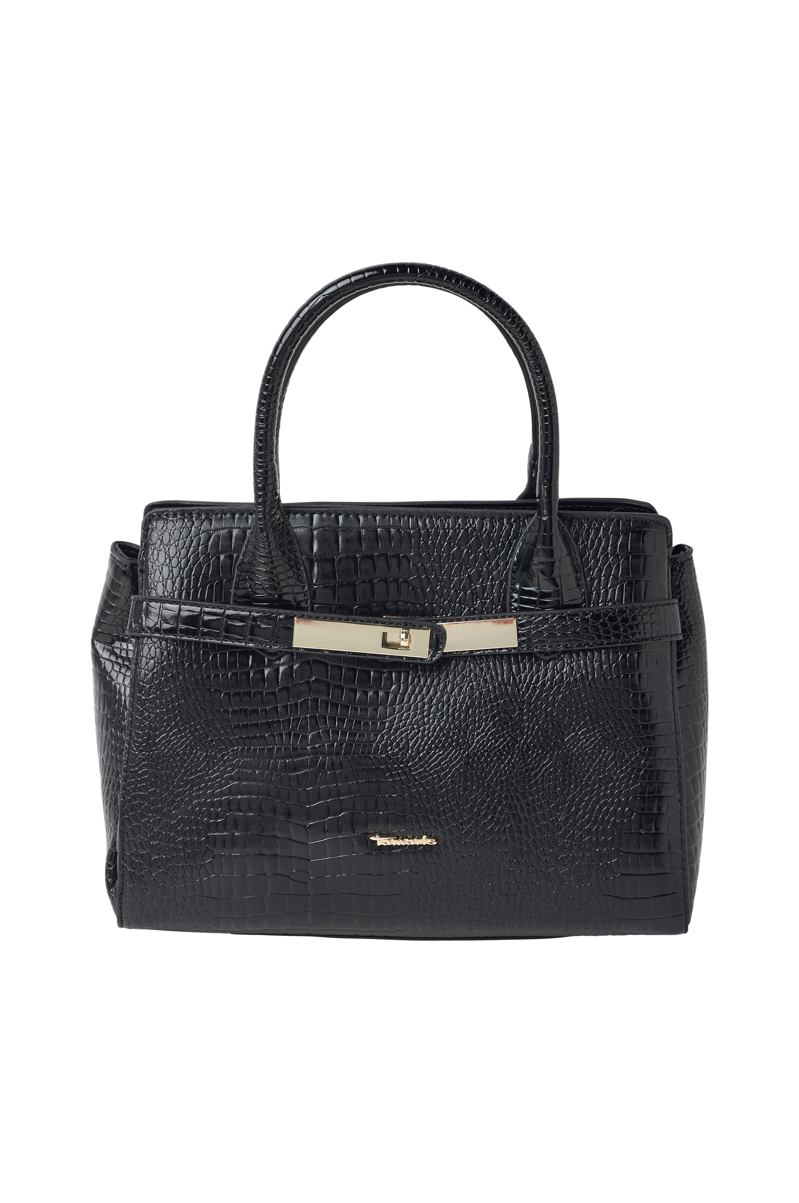 • Taske i blankt imiteret læder med præget krokodillemønster
