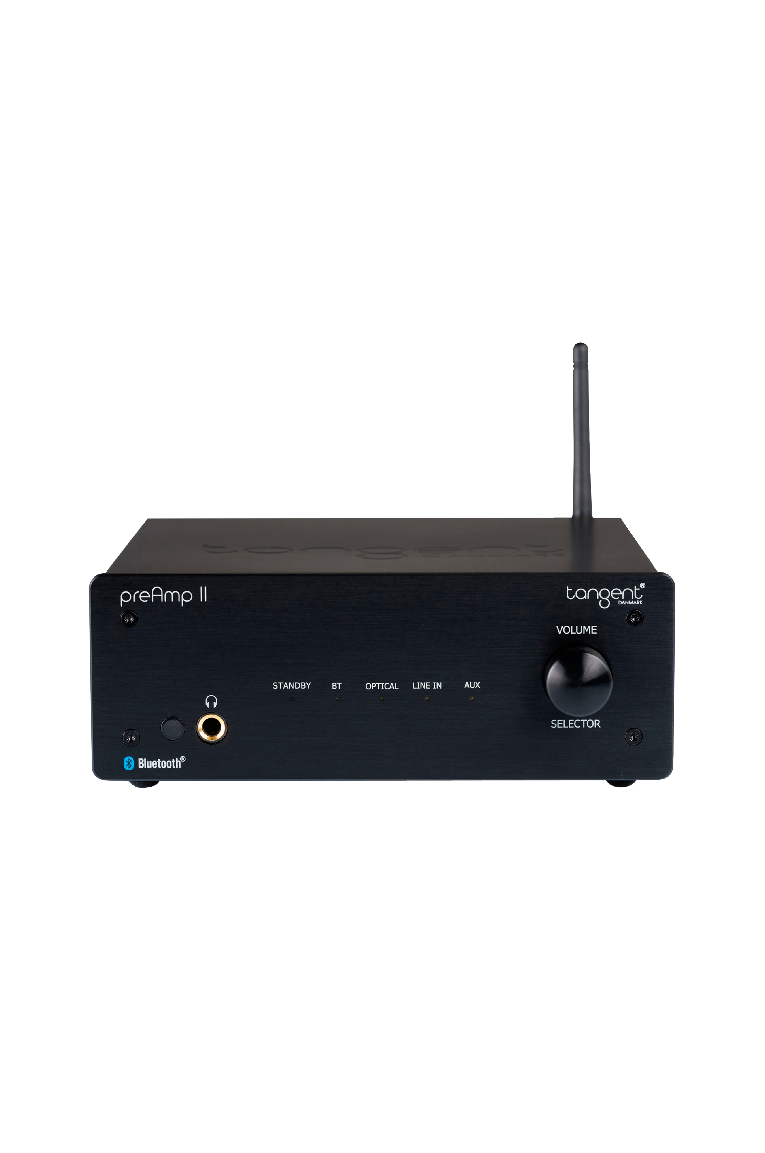 Praktisk forforstærker med XLR-balanceret tilslutning. Tangent PreAmp II leverer flere kilder til forstærkere/udgange og tilføjer Bluetooth til aktive højttalere. Den har Bluetooth, digital optisk, phono og analoge AUX-indgange. Indbygget RIAA/Phono til pladespillere. Balancerede udgange til XLR-tilsluttede forstærkere. Hovedtelefonudgang tilgængelig. Tilslut subwoofer via subout. Automatisk start fra standby på alle kilder, perfekt til tv eller multirum. Fjernbetjening og intern strømforsyning medfølger. Funktioner: Bluetooth 5.0 Aptx HD, RIAA-indgang, 192 kHz/24-bit, manuel. Bruges sammen med Tangent PowerAmp II.