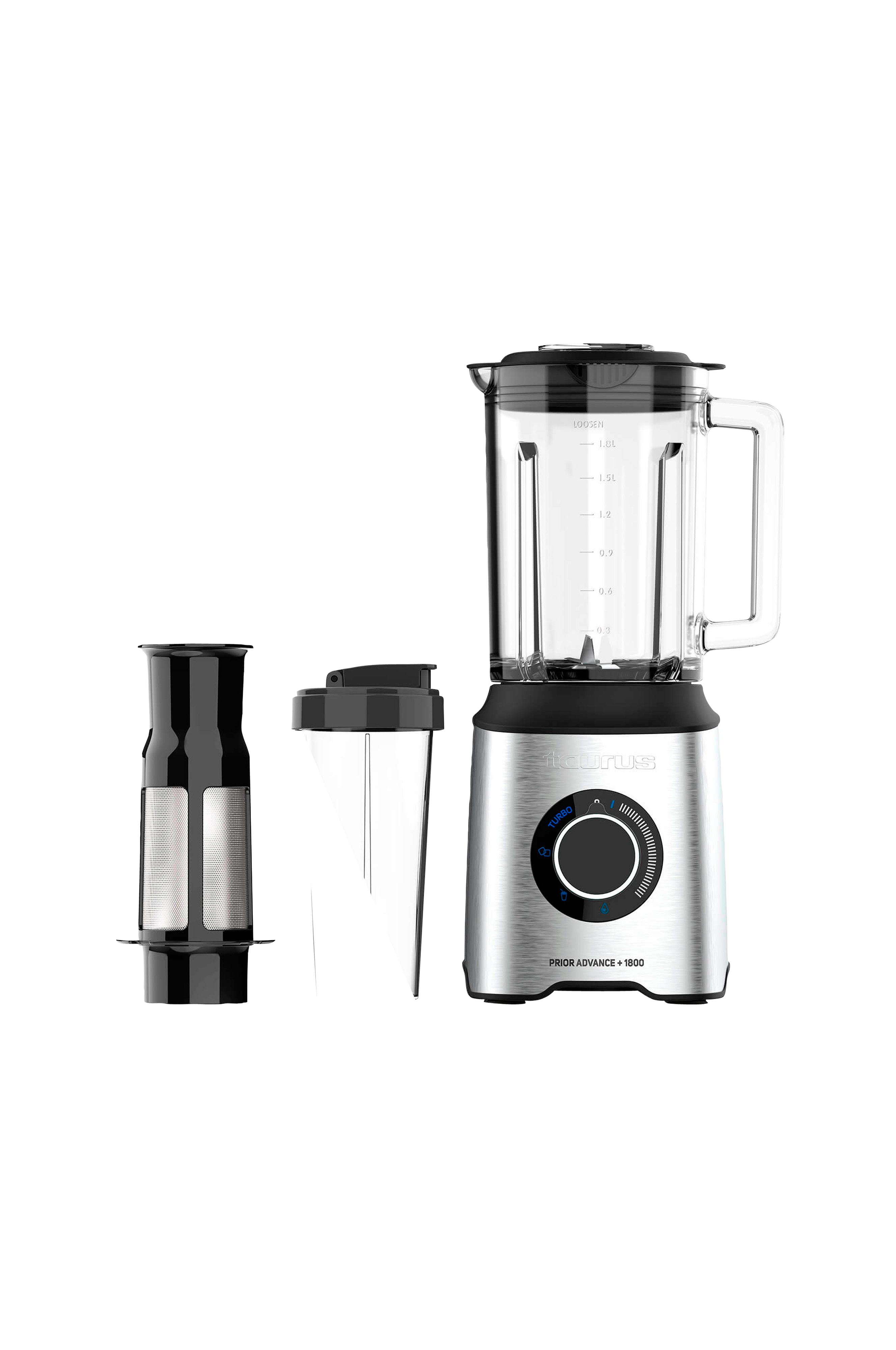 Taurus blender prior advance+ er udstyret med en kraftig 1800w motor, der gør det nemt at håndtere en række forskellige ingredienser. Glaskanden af høj kvalitet rummer 2 l med en brugbar kapacitet på 1,8 l og er designet med prior tornado-systemet for optimal blendning. Blenderen har en variabel hastighedskontrol og fire touch-funktioner: turbo, isknusning, smoothie og selvrensning, hvilket gør den ideel til alt fra at knuse is til at lave perfekte smoothies. De aftagelige force xtreme-knive i rustfrit stål er både effektive og nemme at rengøre, og både kande og knive tåler opvaskemaskine, så de er nemme at rengøre. For ekstra bekvemmelighed har blenderen en påfyldningstud på låget med et 50 ml målebæger samt en hældetud på kanden. Den er udstyret med skridsikre fødder og et sikkerhedssystem, der kun aktiveres, når kanden er placeret korrekt. Det medfølgende tilbehør omfatter et frugtfilter og en bærbar kop, hvilket gør denne blender til et alsidigt og praktisk redskab i køkkenet.