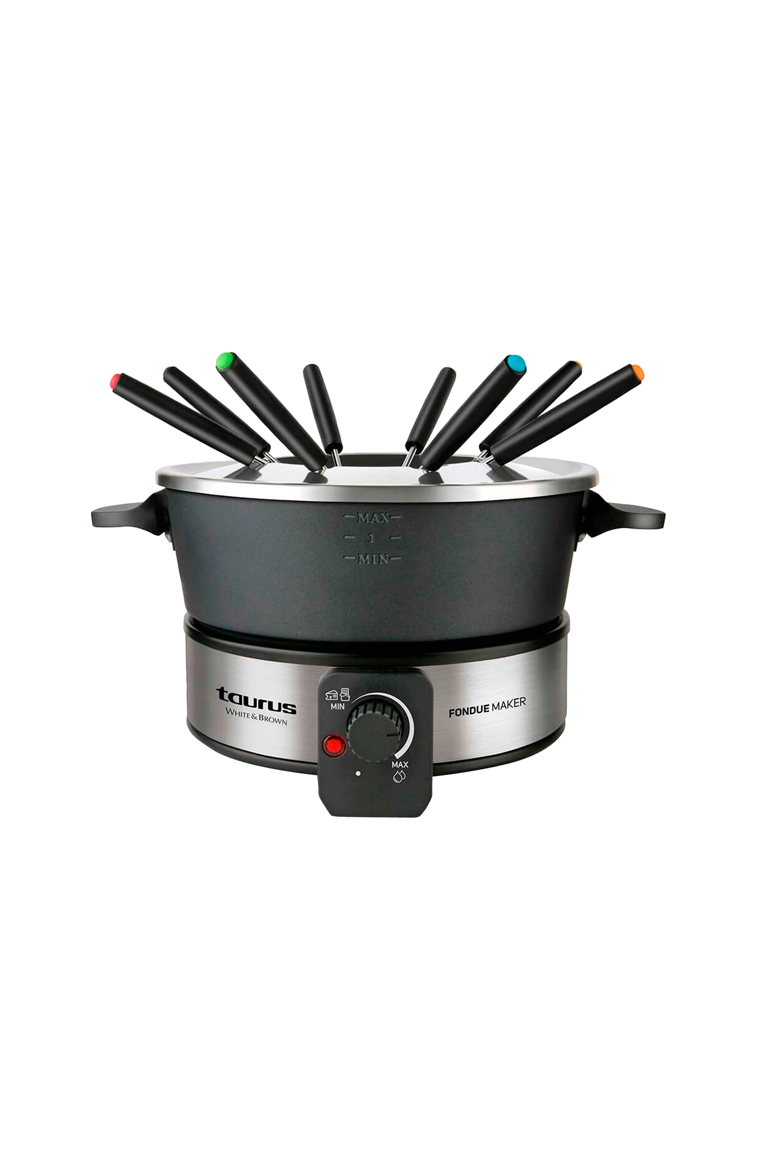 Taurus fonduemaskine er den perfekte fondue til at dele dine måltider med op til 8 personer. Den indeholder 8 farvedifferentierede gafler, som gør det muligt at tilberede eller dyppe maden med det samme. Lav alle slags fonduer: med olie, ost, chokolade og endda kinesisk. Takket være dens 1000w effekt kan du opvarme grydens indhold meget hurtigt. Placer den midt på bordet, vælg temperaturen, og den er klar på et øjeblik.