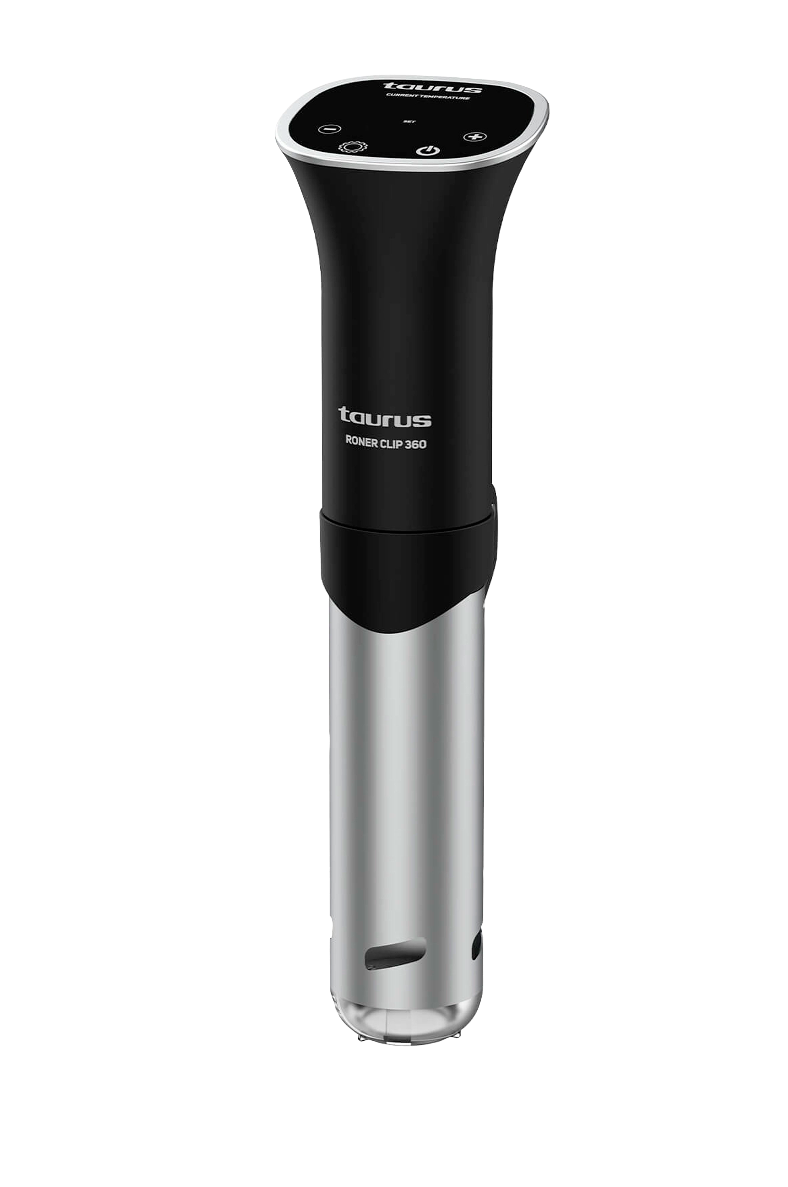 Taurus sous vide roner clip 360 er en kraftfuld og præcis sous vide-enhed med en effekt på 1200 W, der er designet til at give jævn og hurtig opvarmning gennem 360° vandcirkulation. Den giver præcis kontrol over tilberedningstid og temperatur med et justerbart temperaturområde mellem 20 og 90°c i trin på 0,5°c. Det gør det muligt at opnå perfekte resultater hver gang. Varmerøret i rustfrit stål og spændebeslaget gør det nemt at tilpasse enheden til enhver beholder med en maksimal kapacitet på 15 liter. Enheden er ipx7-klassificeret, hvilket betyder, at den er fuldt nedsænkelig og sikker at bruge i vand. LED-displayet viser tydeligt tid og temperatur, og et akustisk signal advarer, når den indstillede temperatur er nået, og når tilberedningsprocessen er slut. Med lydløs drift og en "soft touch"-finish er denne sous vide-enhed både brugervenlig og effektiv. Den slukker automatisk, når timeren løber ud, eller hvis vandstanden falder til under minimumsniveauet, hvilket giver ekstra sikkerhed og bekvemmelighed i køkkenet.