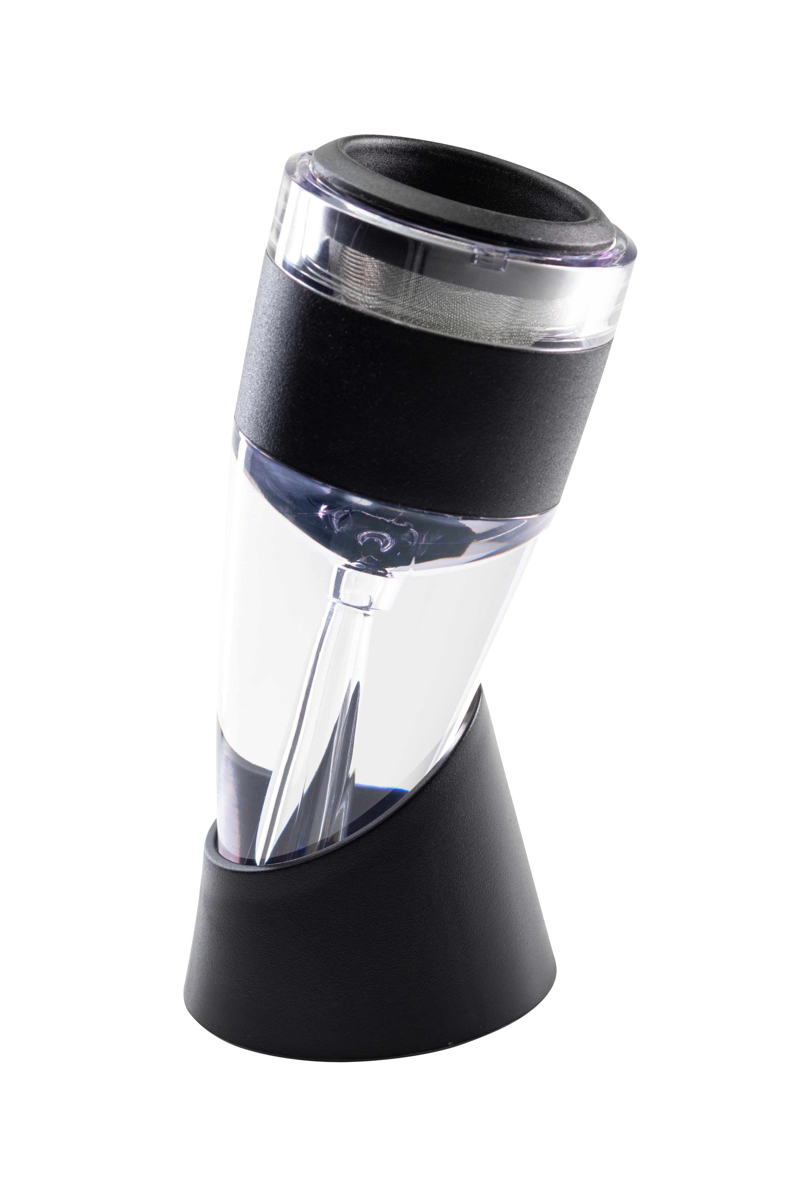 Taylors vinbelufter med tilhørende drypstativ. Løfter vinen direkte fra flasken ned i glasset og frigiver både aromaer og smag.